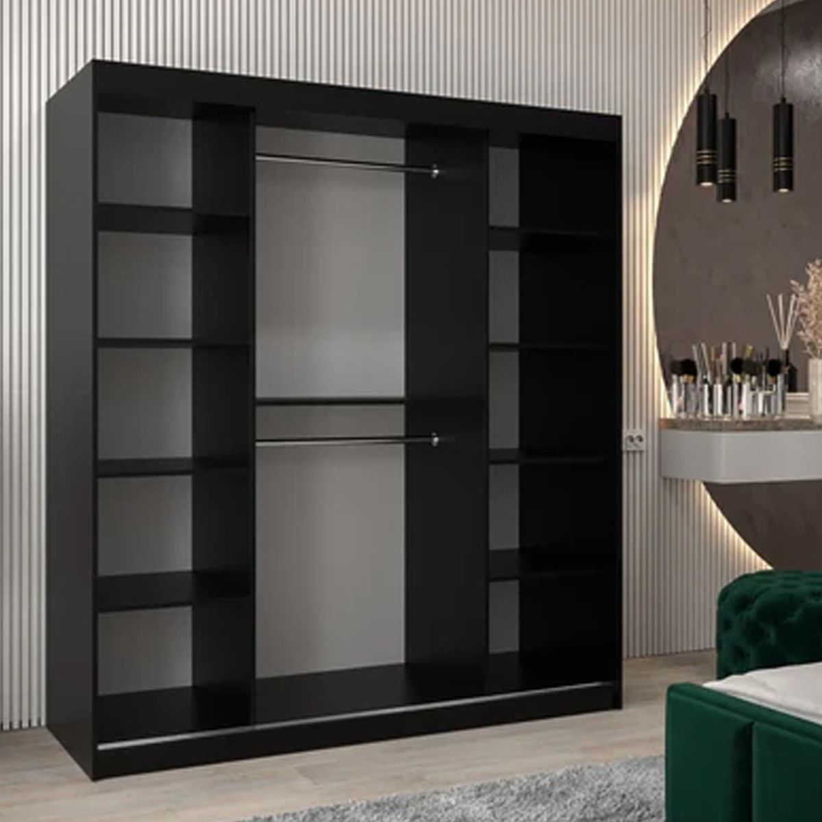 Sliding Wardrobe - SPURDLE 2 Door Mirrored Wardrobe Black 180cm