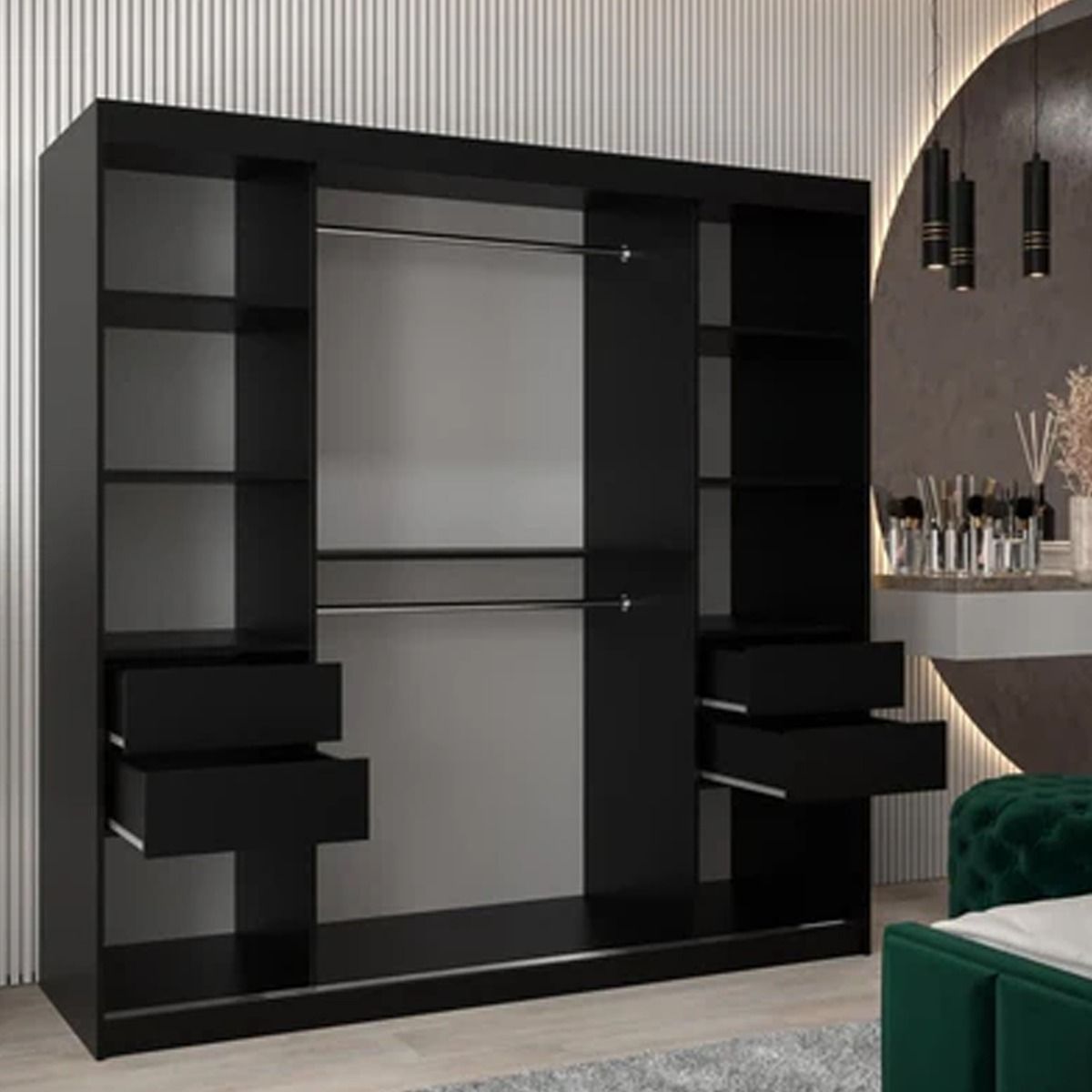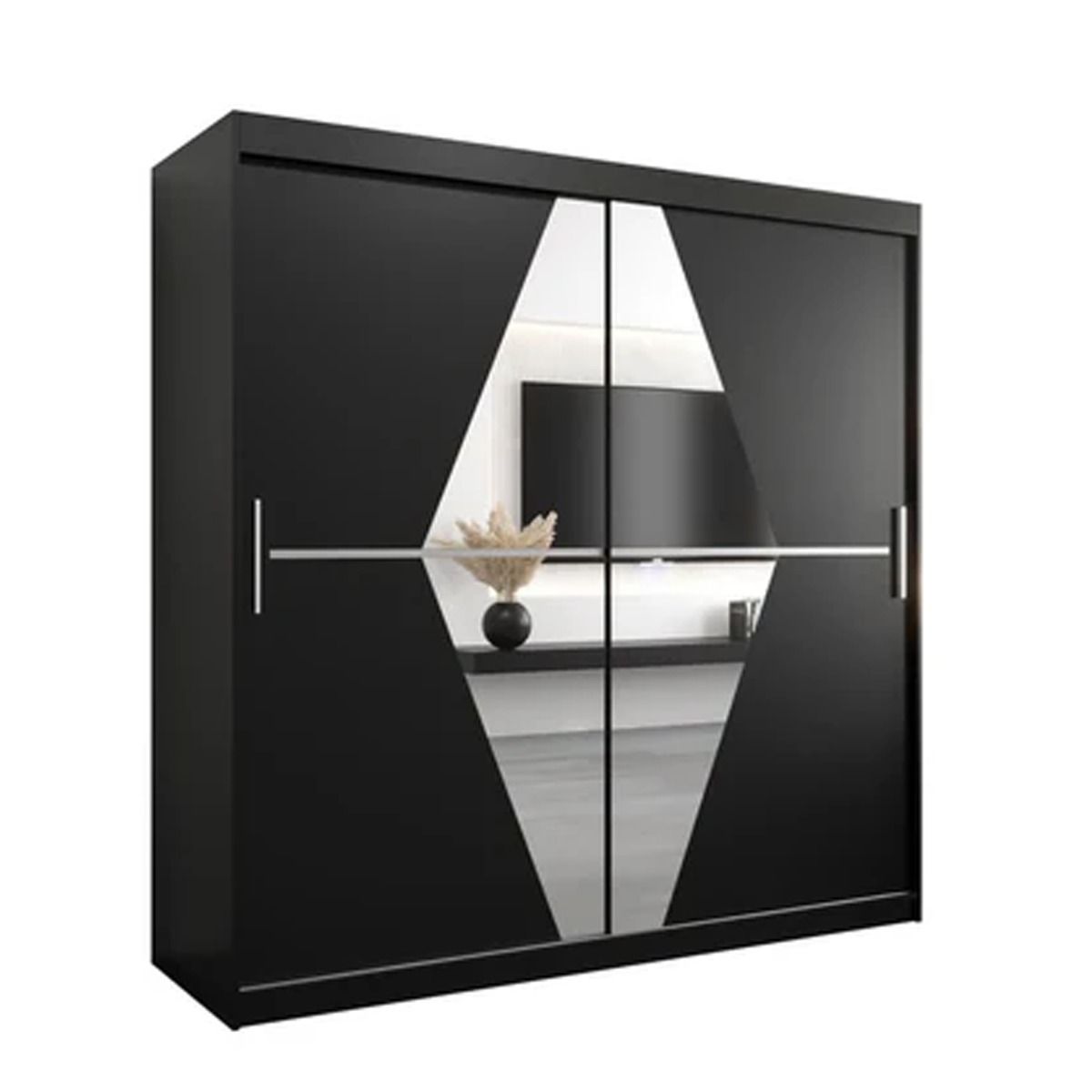 Sliding Wardrobe - SPURDLE 2 Door Mirrored Wardrobe Black 200cm