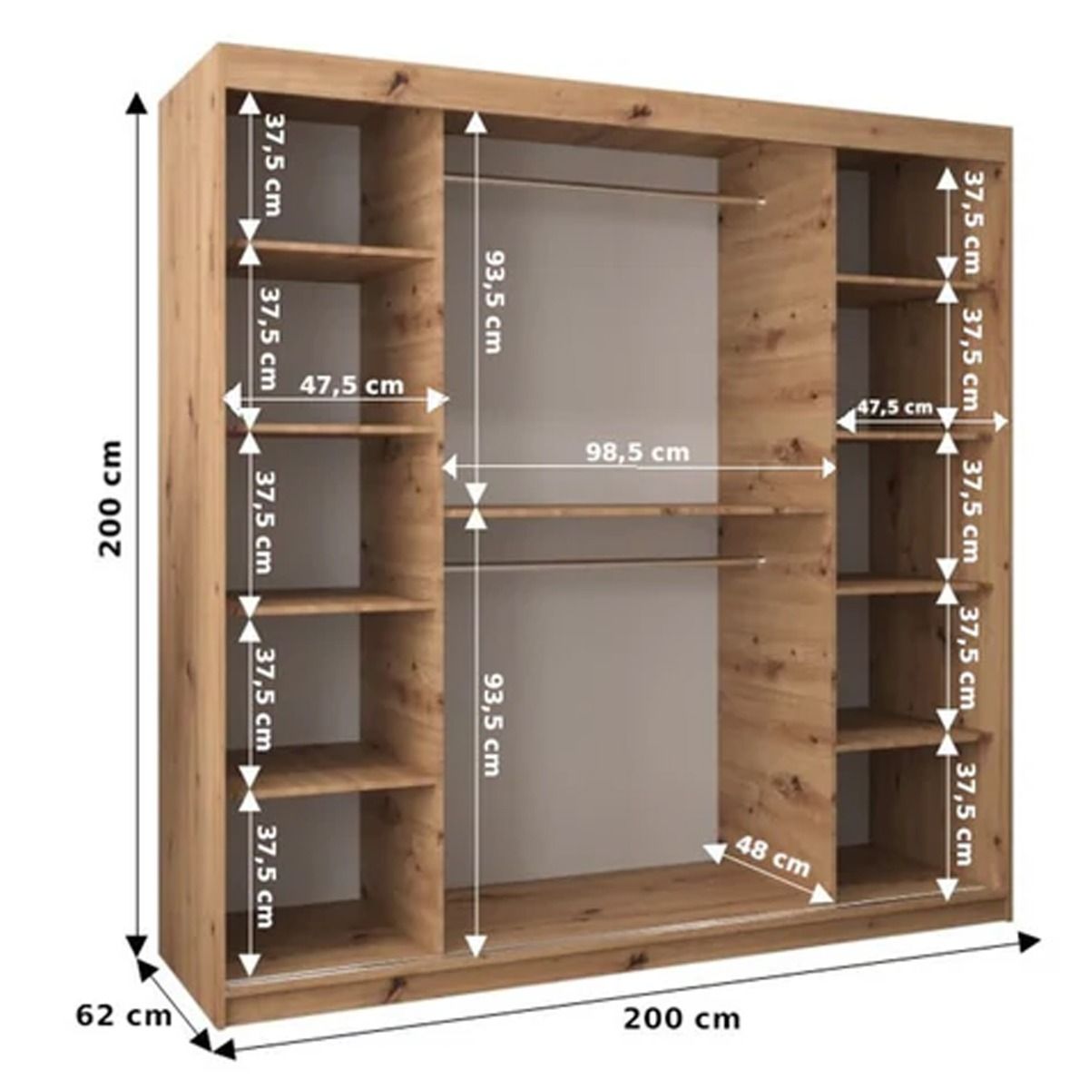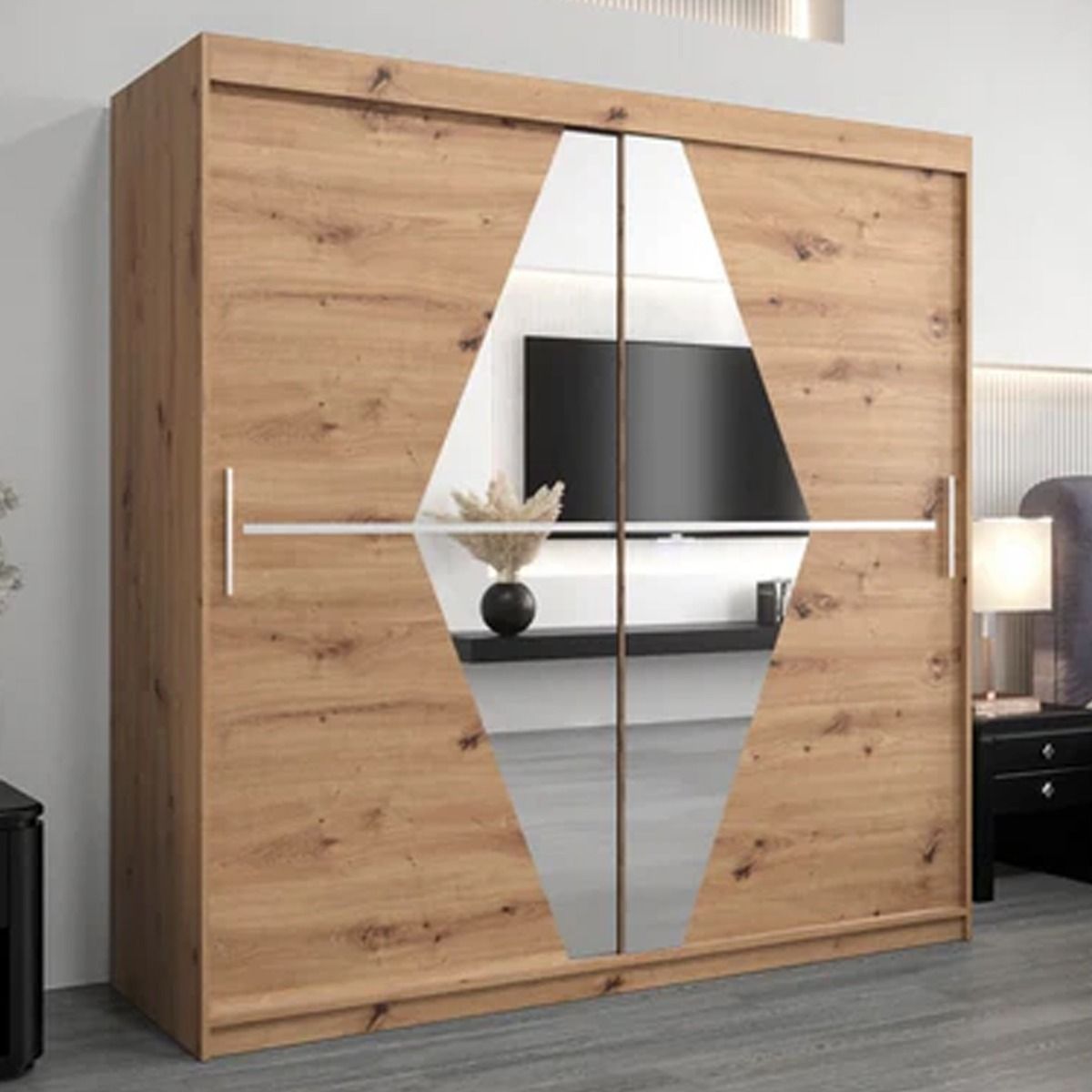 Sliding Wardrobe - SPURDLE 2 Door Mirrored Wardrobe Oak Artisan 200cm