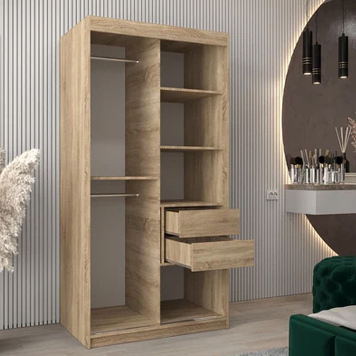 Sliding Wardrobe - SPURDLE 2 Door Mirrored Wardrobe Oak Sonoma 100cm