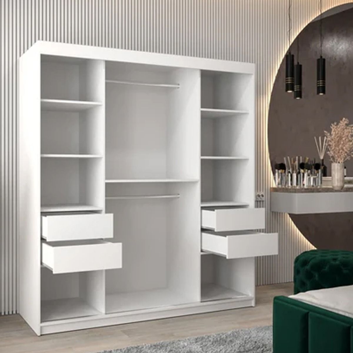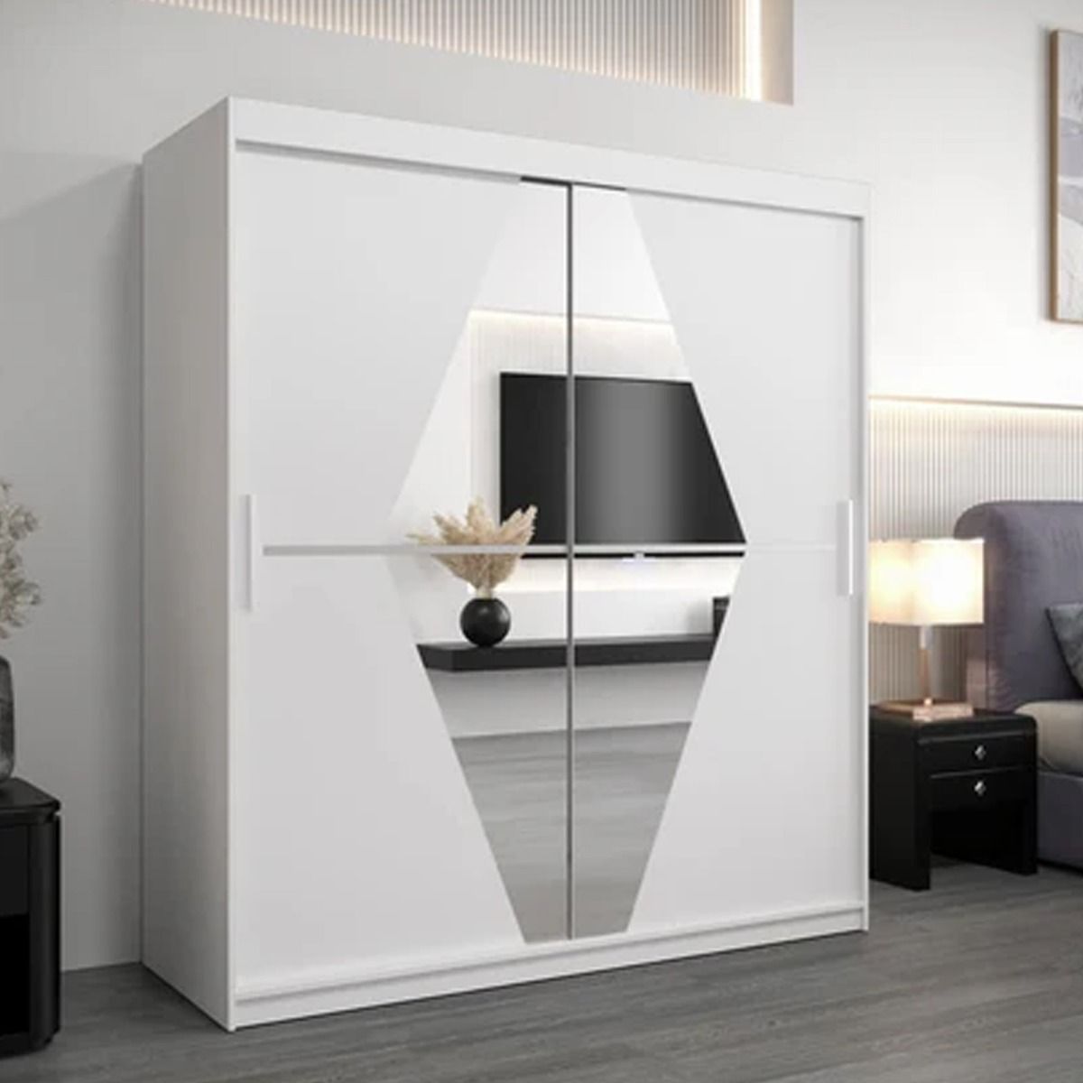 Sliding Wardrobe - SPURDLE 2 Door Mirrored Wardrobe White 180cm