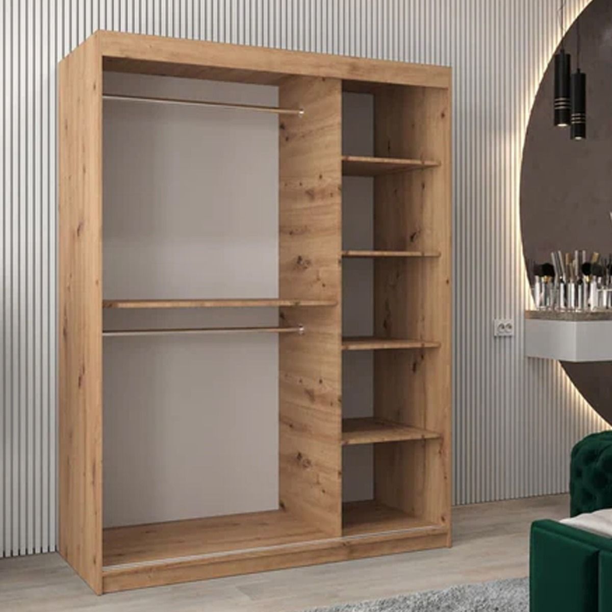 Sliding Wardrobe - TIVERTON I 2 Door Mirrored Wardrobe Oak Artisan 150cm