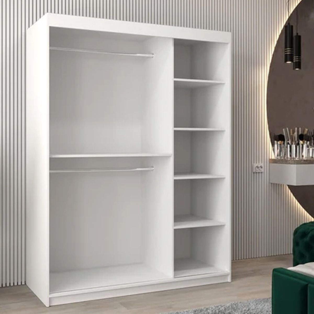 Sliding Wardrobe - TIVERTON I 2 Door Mirrored Wardrobe White 150cm