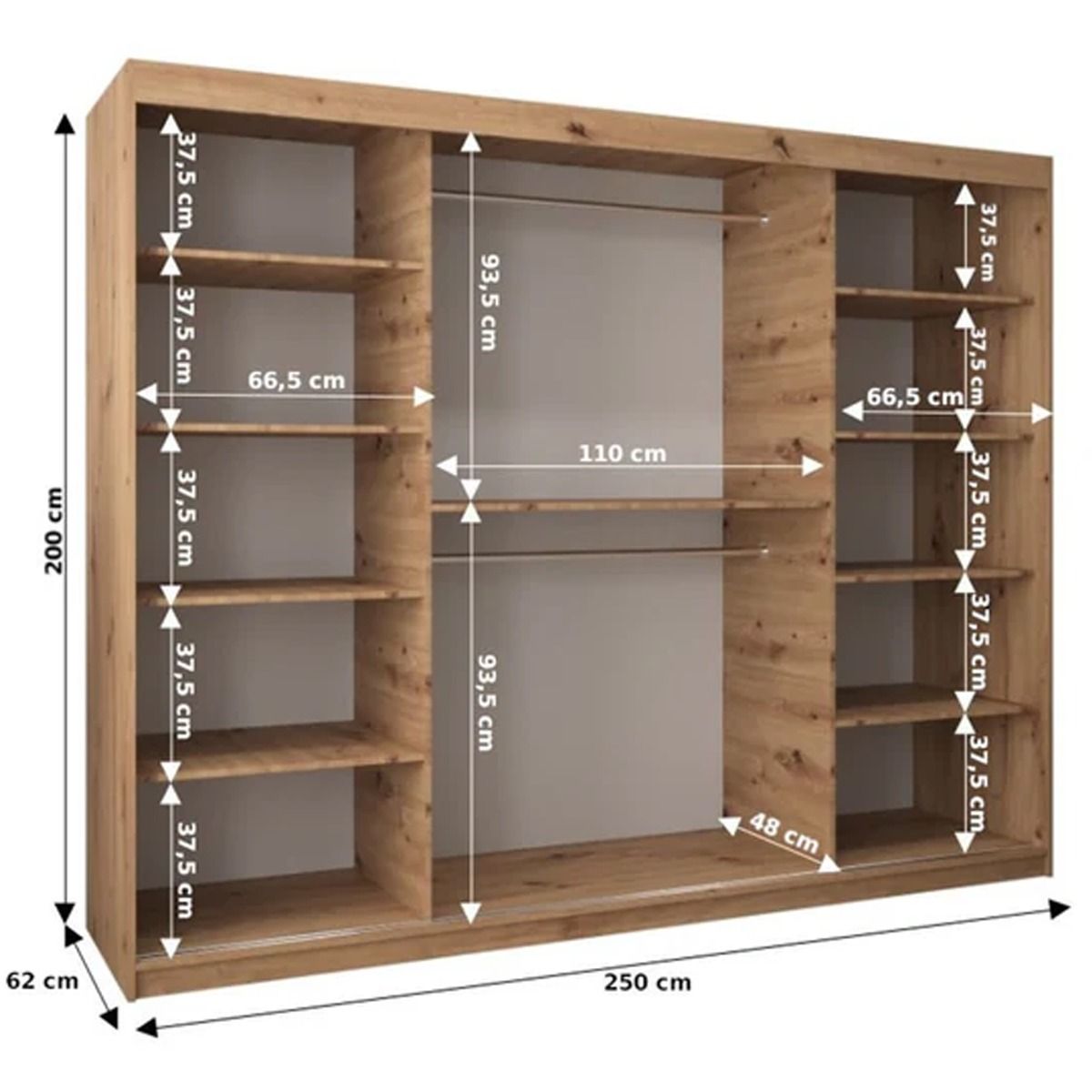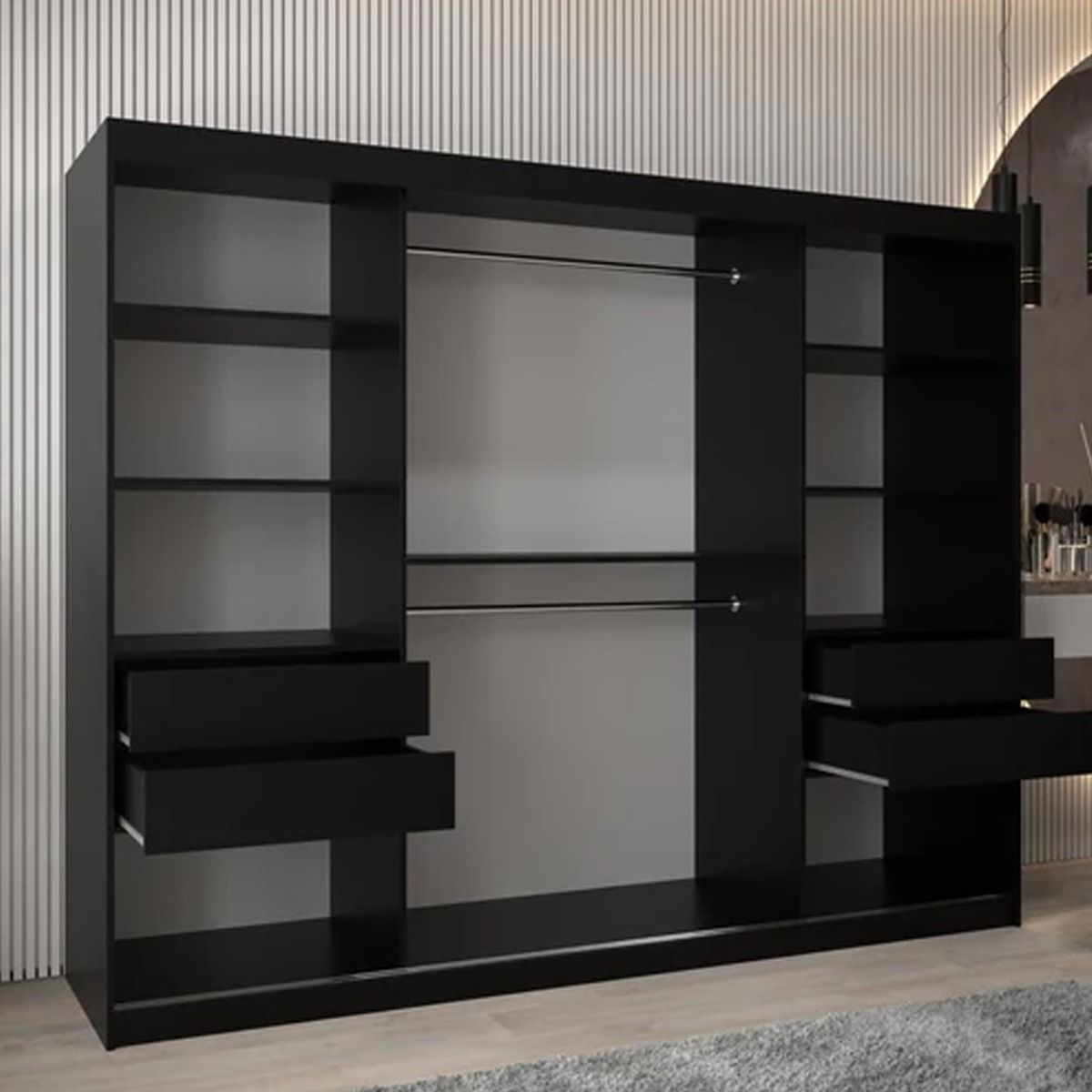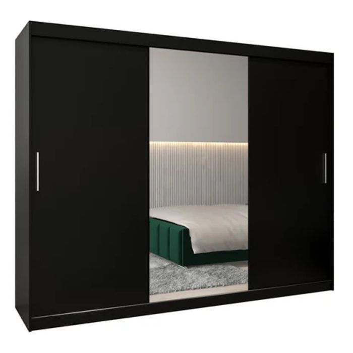 Sliding Wardrobe - TIVERTON I 3 Door Mirrored Wardrobe Black 250cm