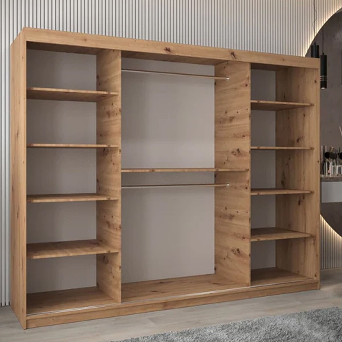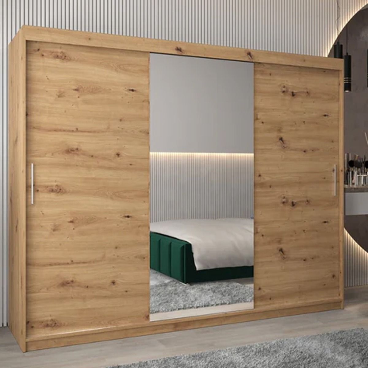 Sliding Wardrobe - TIVERTON I 3 Door Mirrored Wardrobe Oak Artisan 250cm
