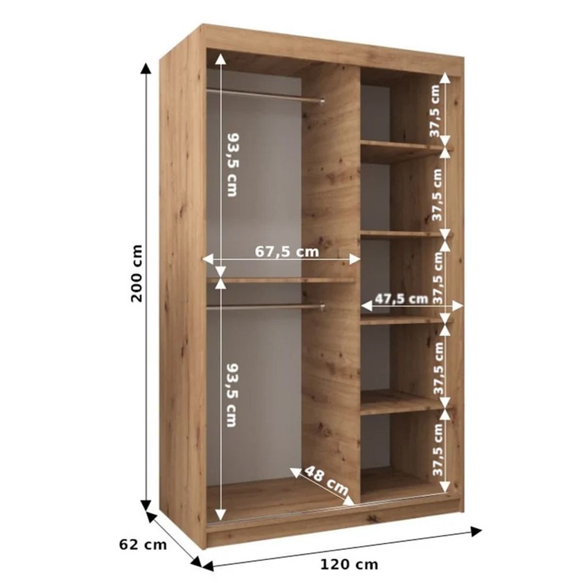 Sliding Wardrobe - TIVERTON II 2 Door Mirrored Wardrobe Oak Sonoma 120cm