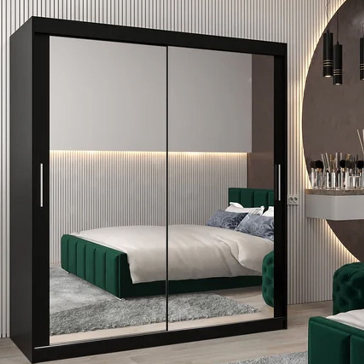 Sliding Wardrobe - TIVERTON III 2 Door Mirrored Wardrobe Black 180cm