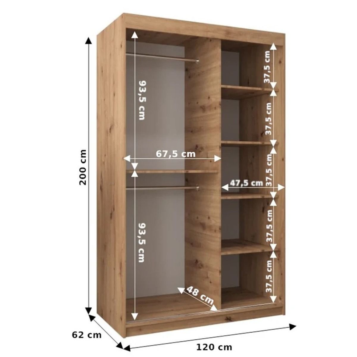 Sliding Wardrobe - TIVERTON III 2 Door Mirrored Wardrobe Oak Sonoma 120cm