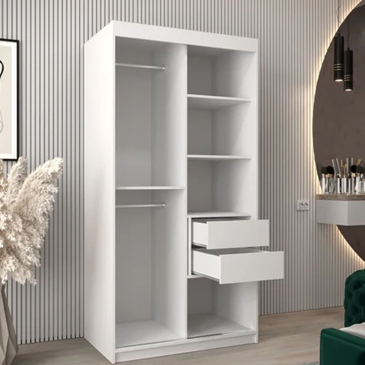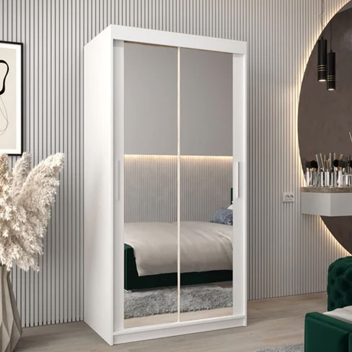 Sliding Wardrobe - TIVERTON III 2 Door Mirrored Wardrobe White 100cm