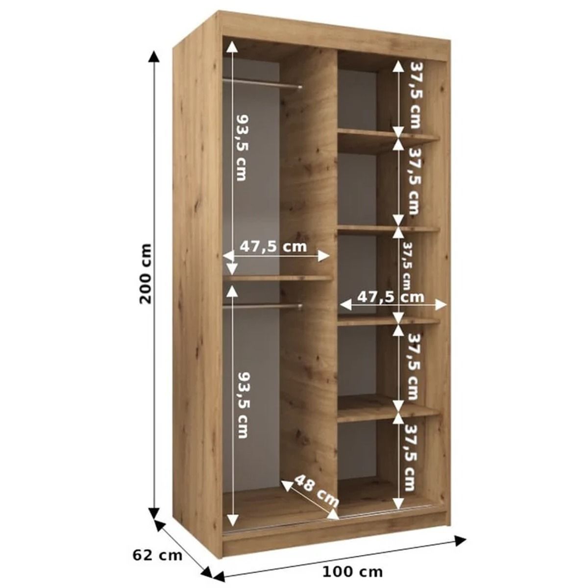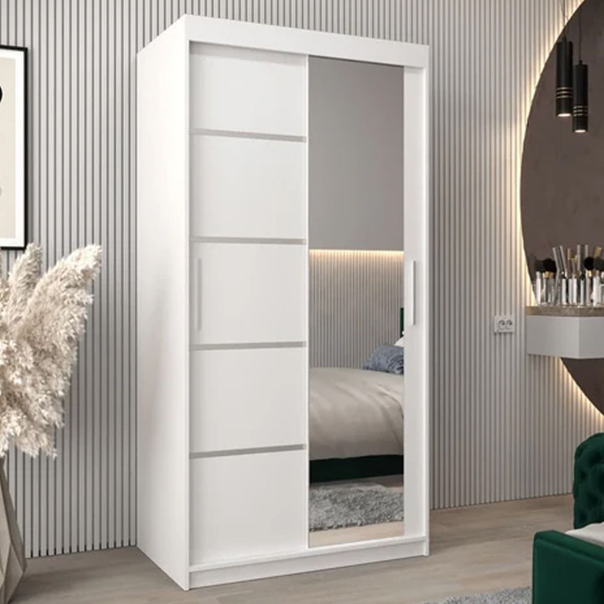 Sliding Wardrobe - VICENZA II 2 Door Mirrored Wardrobe White 100cm