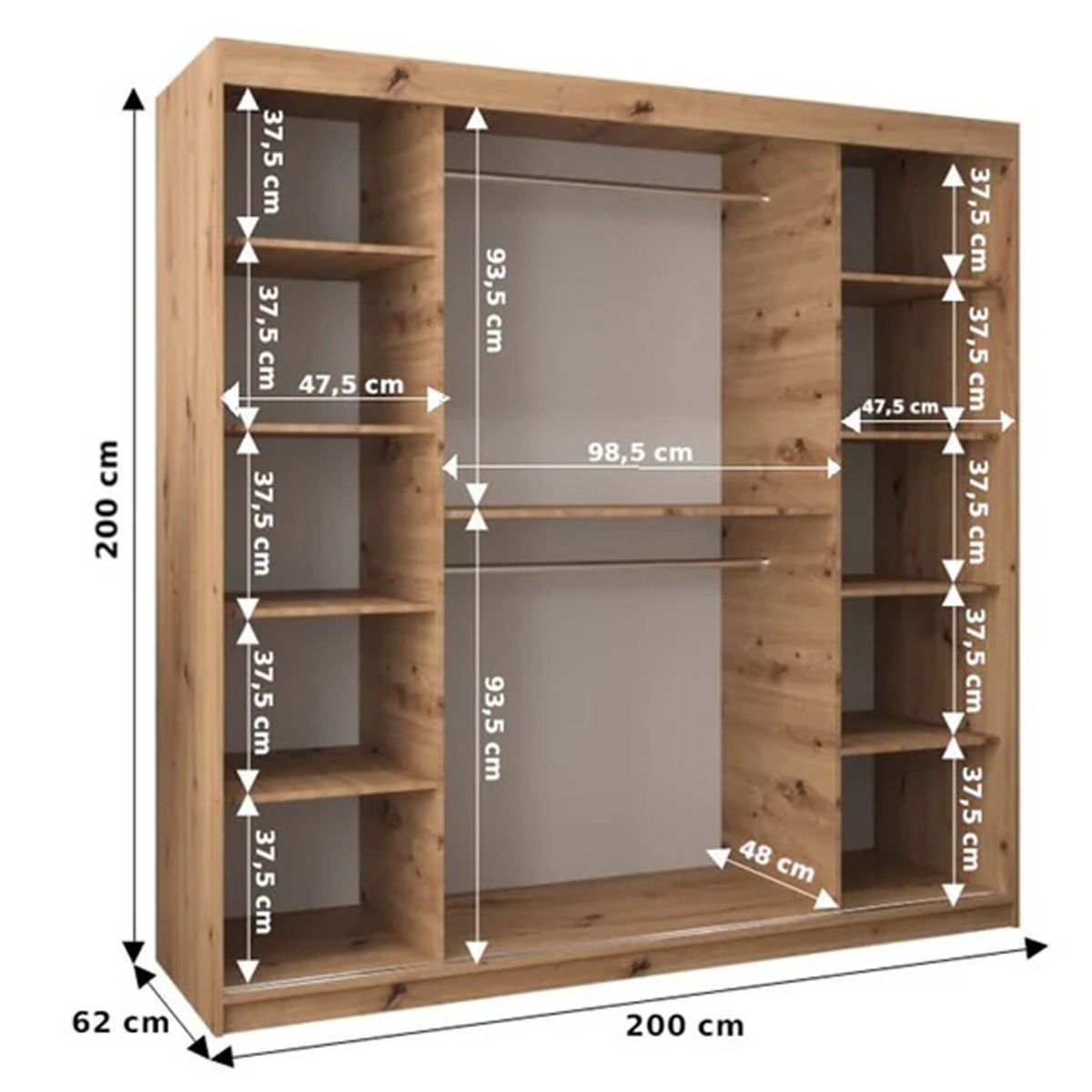 Sliding Wardrobe - VICENZA IV 2 Door Mirrored Wardrobe Oak Artisan 200cm