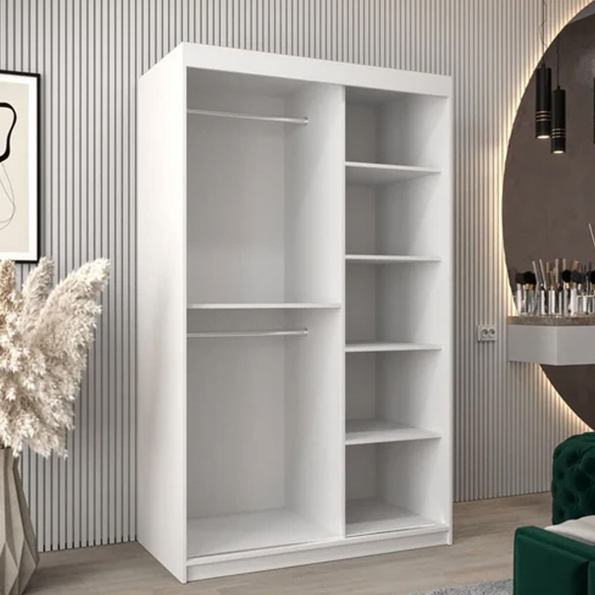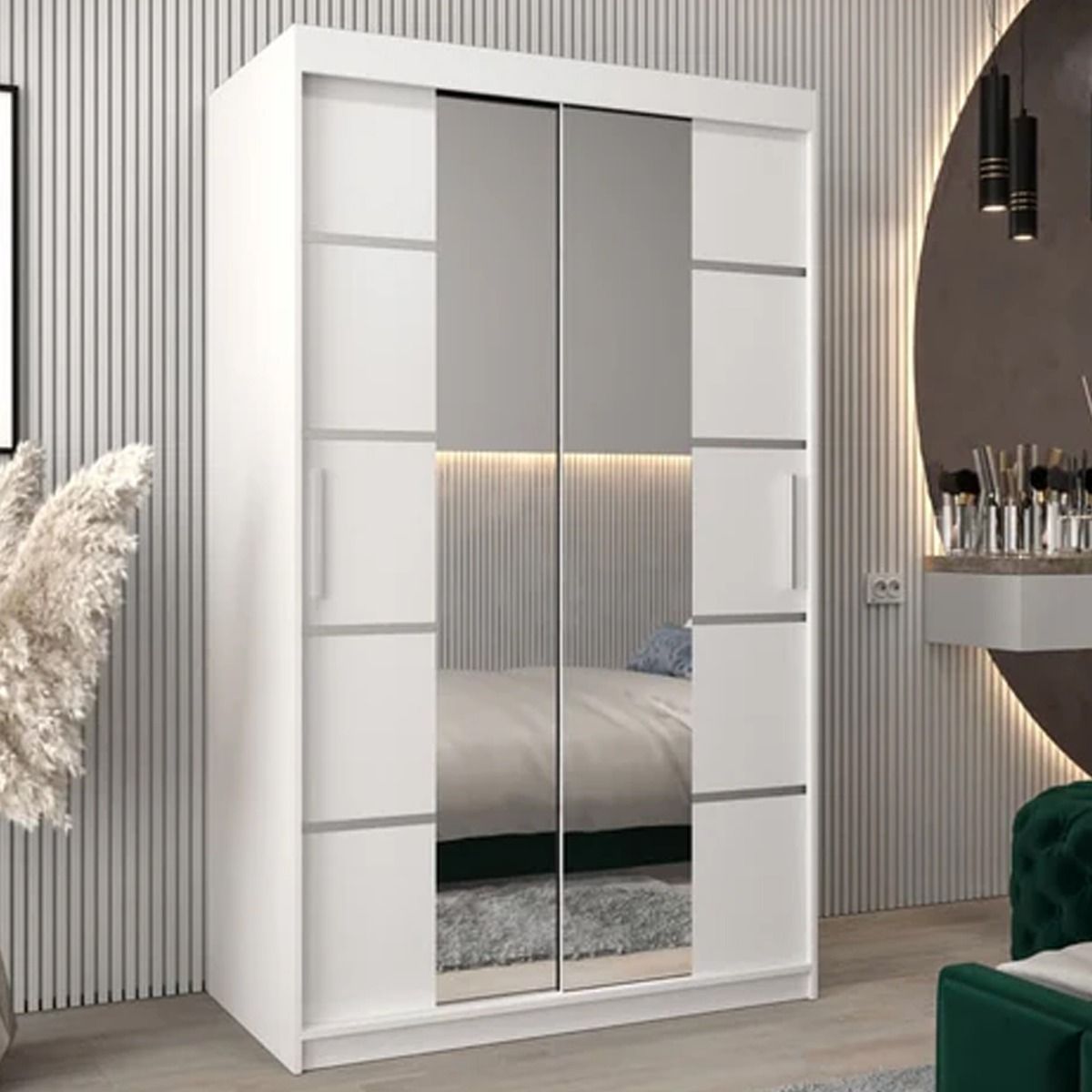 Sliding Wardrobe - VICENZA IV 2 Door Mirrored Wardrobe White 120cm