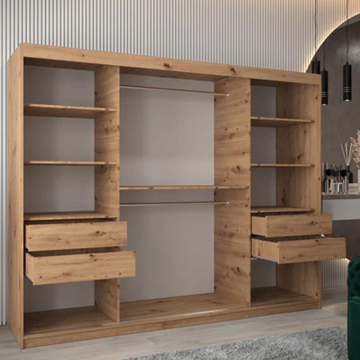 Sliding Wardrobe - WRIGHT 3 Door Mirrored Wardrobe Oak Artisan 250cm