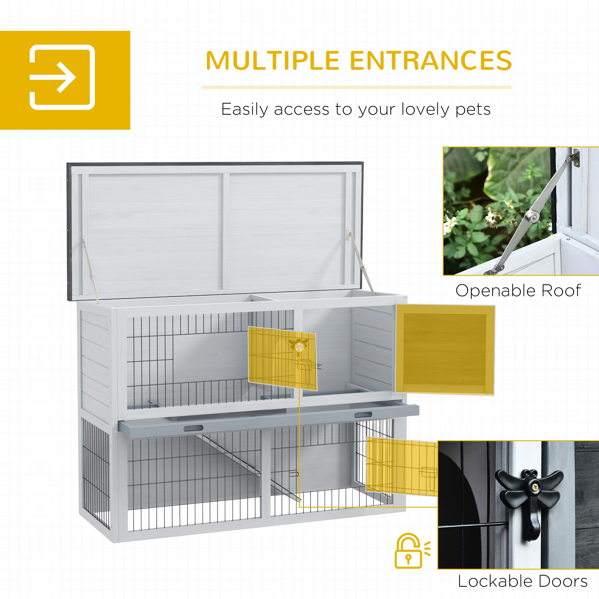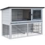 Small Animal Two-Level Fir Wood Hutch w/ Slide Out Tray Grey