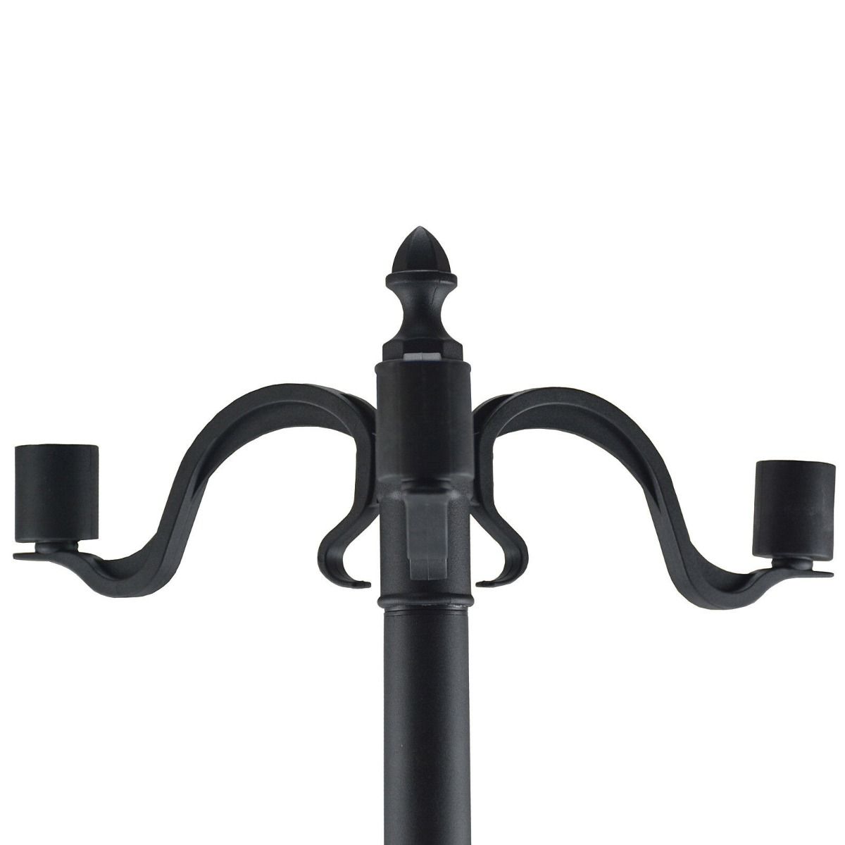 - Stainless steel lamp post connected with a removable plastic base for stability and durability