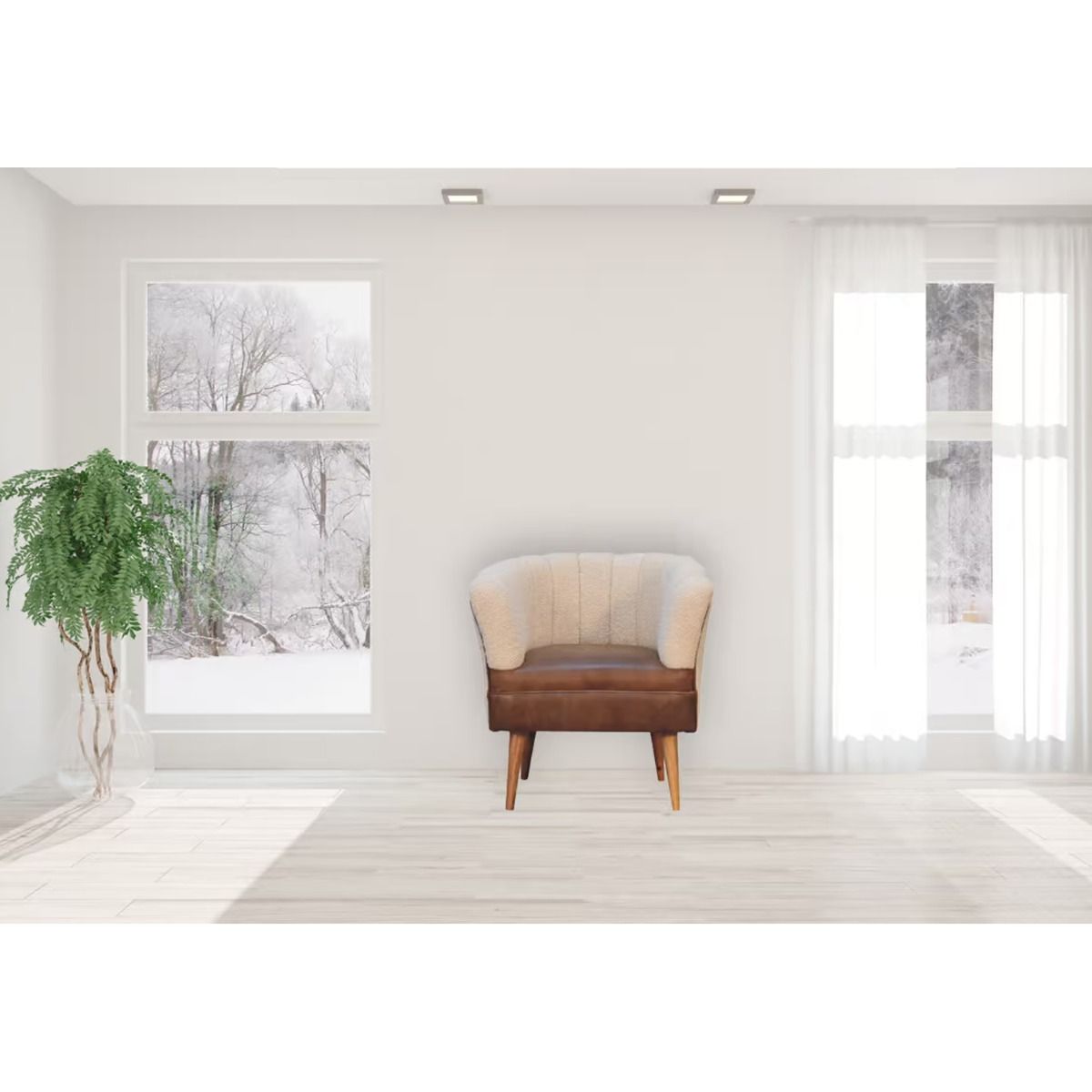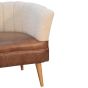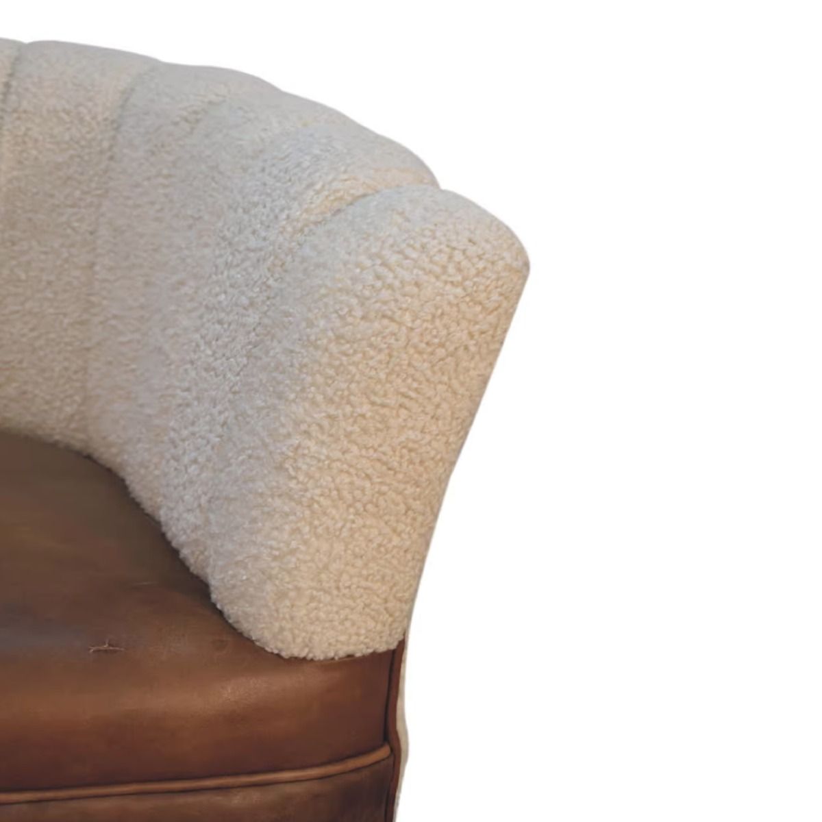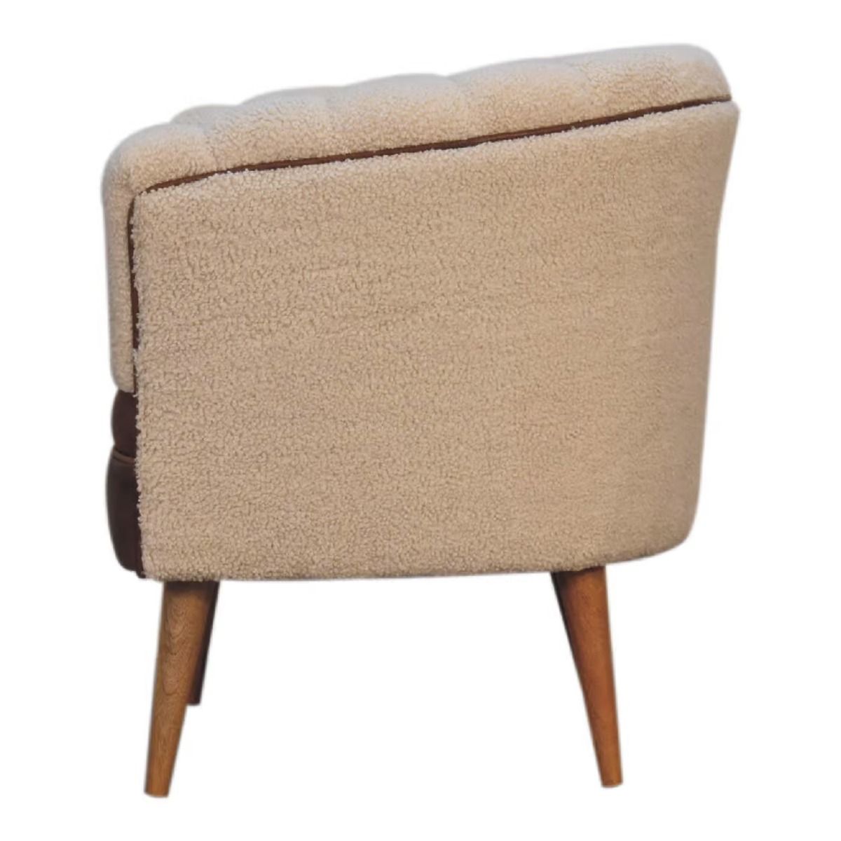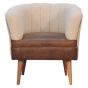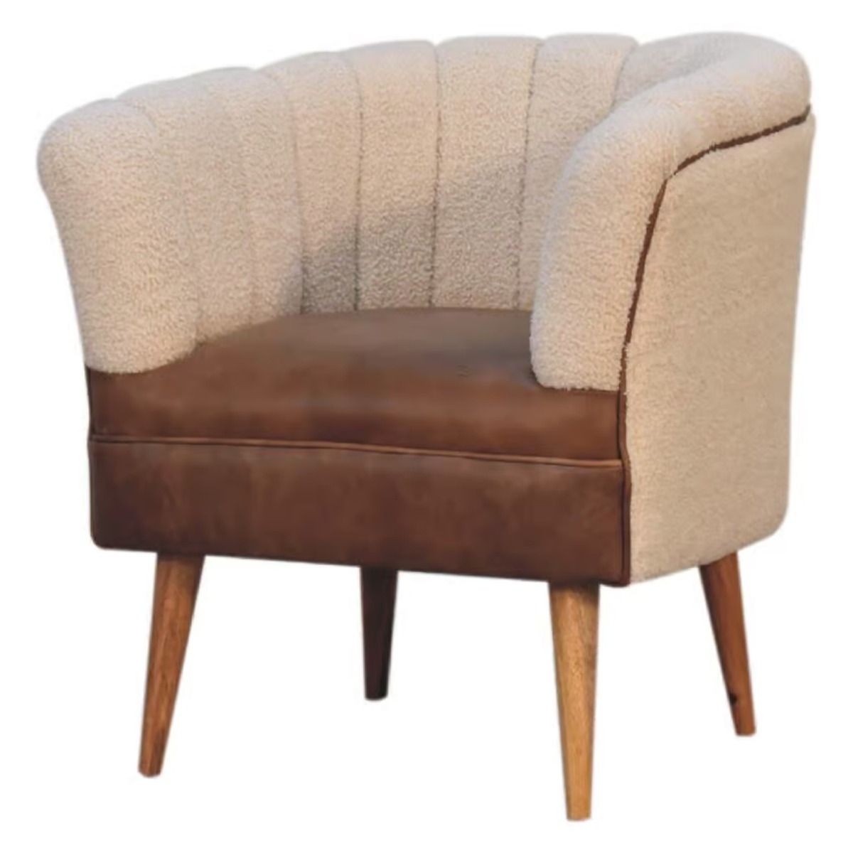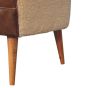 Solid Mango Wood Armchair with Boucle Fabric and Buffalo Hide Leather Seat and Round Feet