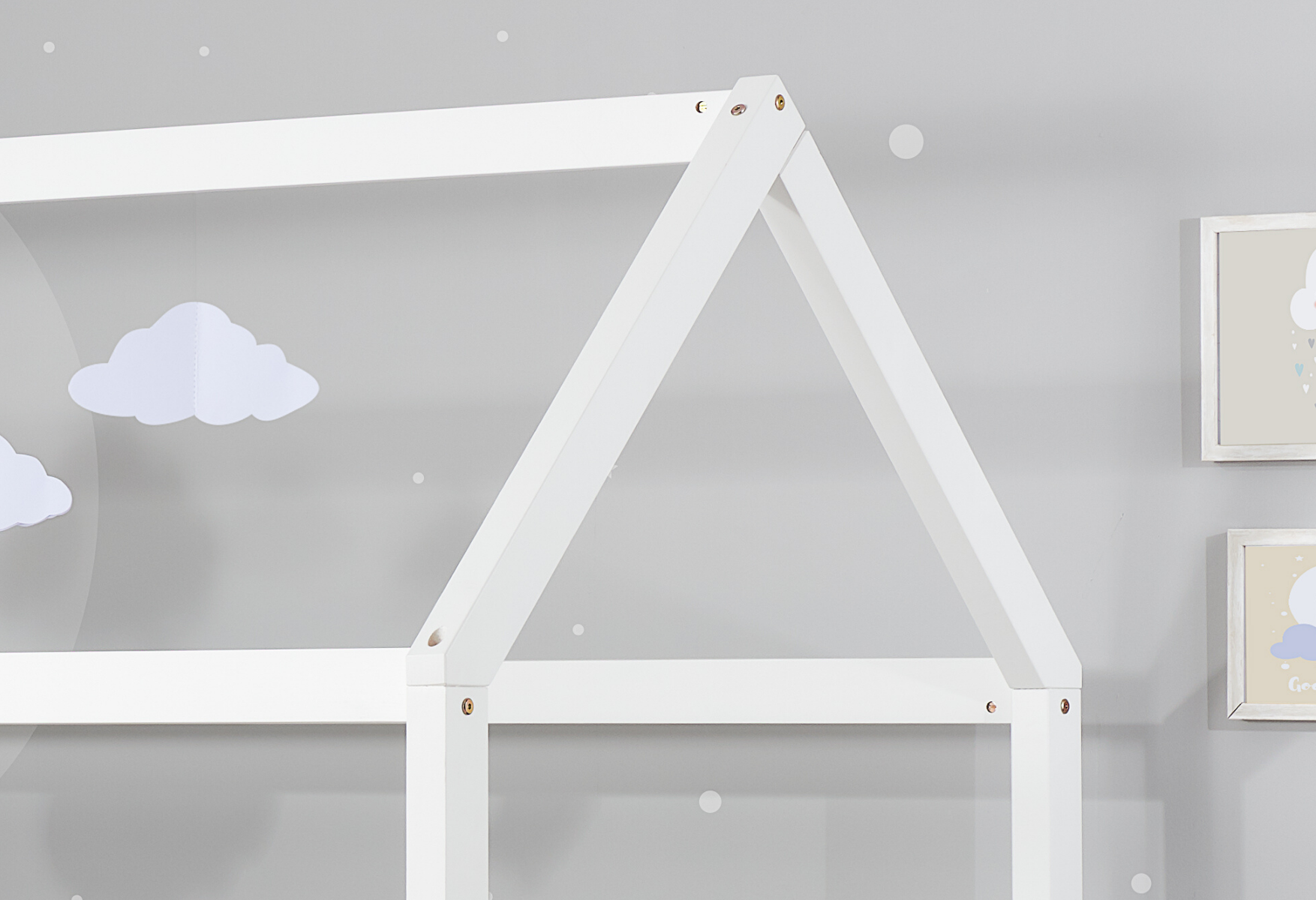 It's time for your kid's independence with their very own house (bed). The wooden bed frame in the shape of a house is the perfect bed for your little one's bedroom. This frame has a solid slatted base for firmer support, allowing air to circulate beneath the mattress. The maximum weight load for this bed is 100 kg.