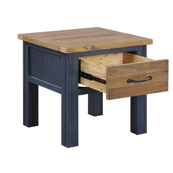 Splatter Reclaimed Wood Side Table With Drawer - Blue