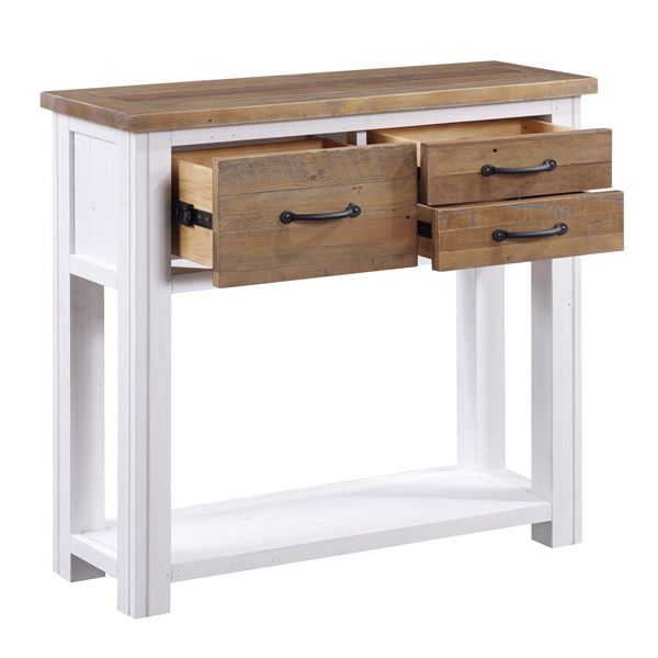 Splatter Reclaimed Wood Small Console Table with 3 Drawer and Open Shelves - White