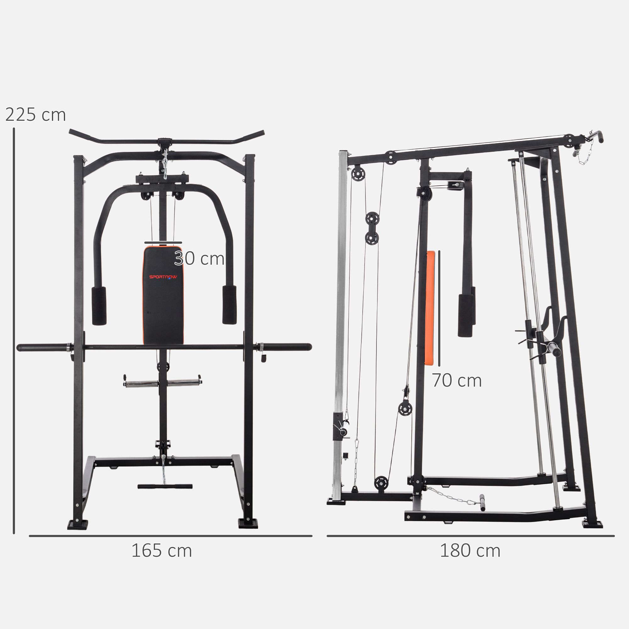 SPORTEDGE 3 In 1 Smith Machine with Dual Cable Pulley System, Chest Press Station, 17-Level Squat Rack and Barbell Bar