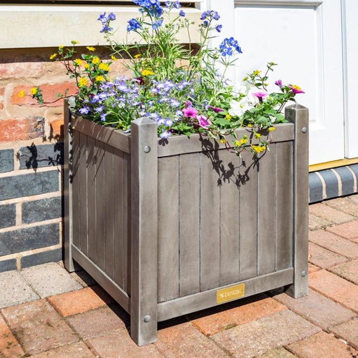 Square Design 50L Hardwood Planter - Pre Painted Grey Wash