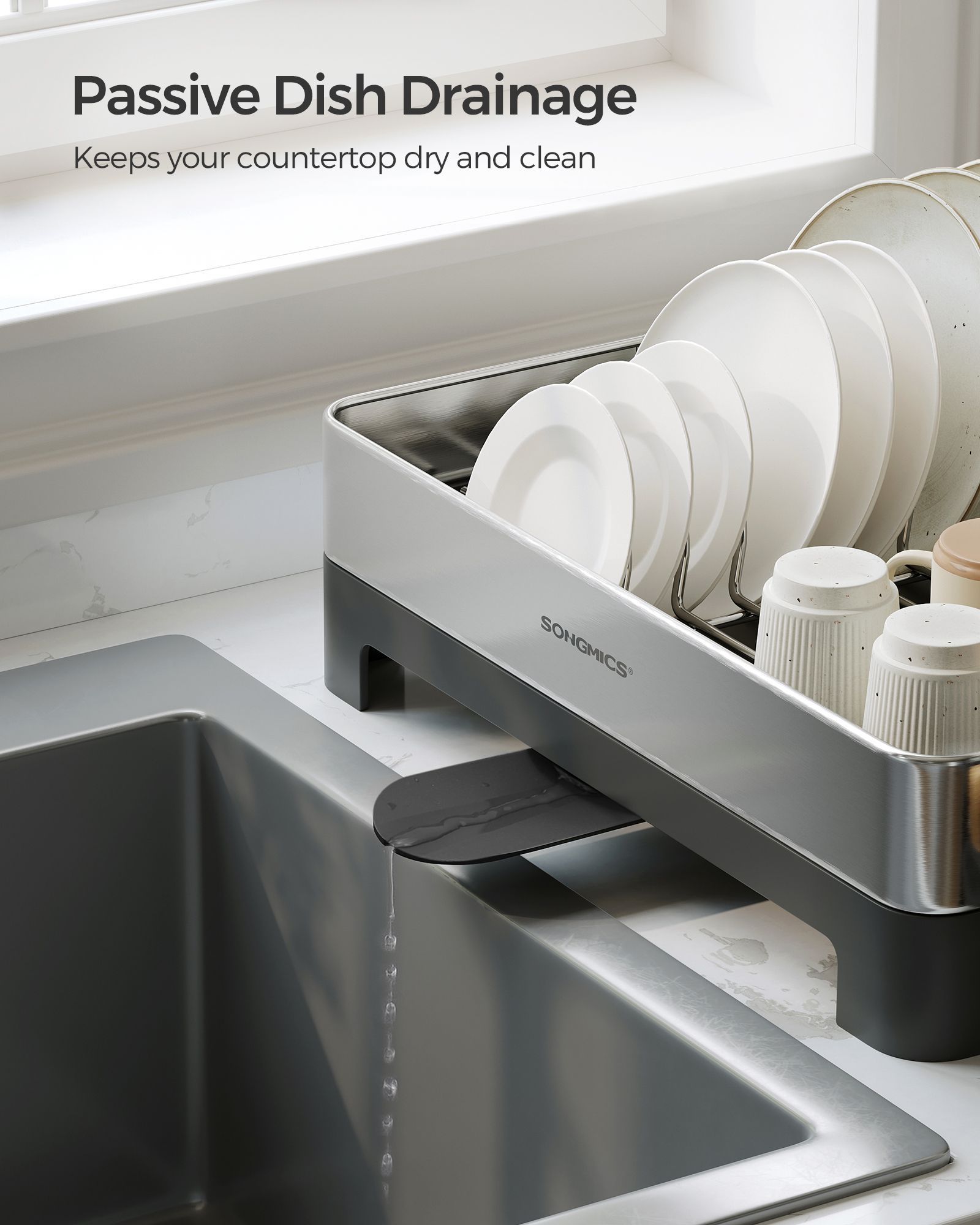 Stainless Steel Dish Drainer with Rotatable Spout