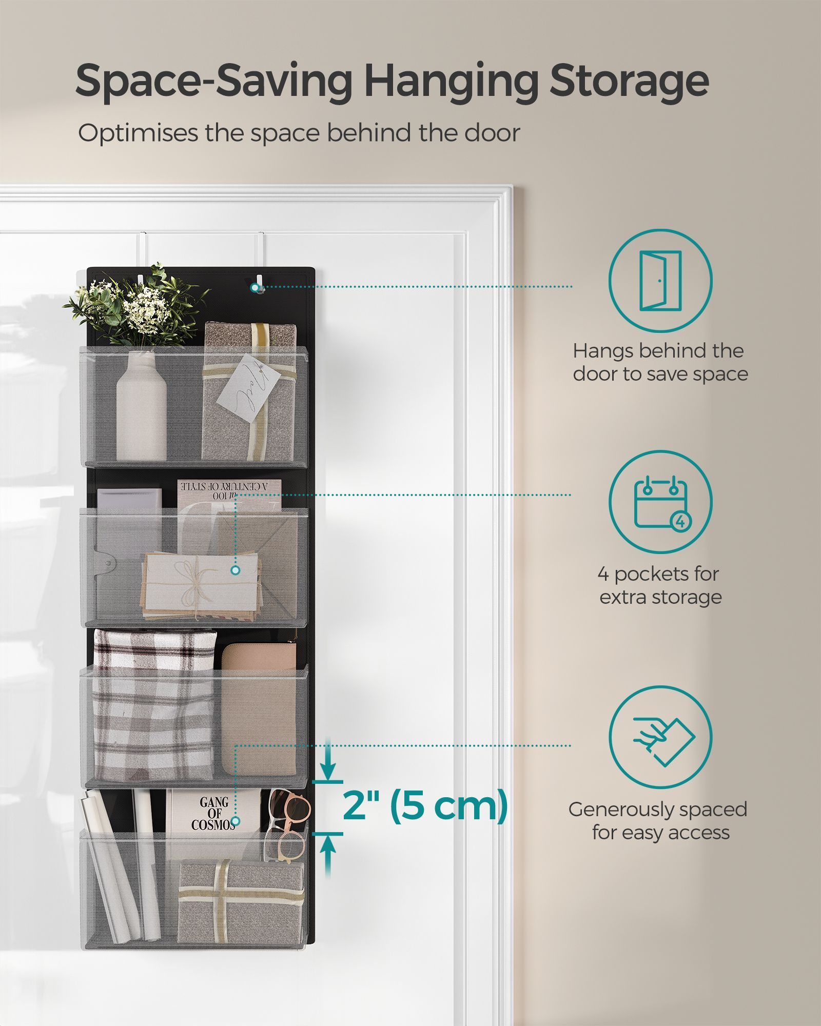 Storage Organiser - ORAVAS 2 Over Door Storage Organiser with Pockets - Black