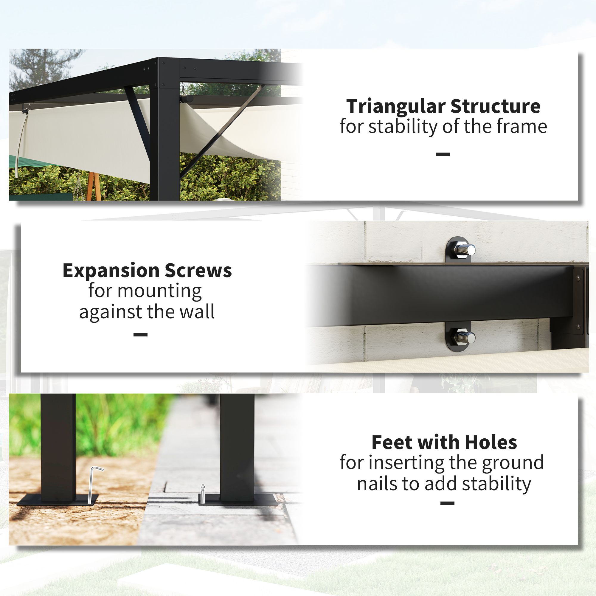 SUNVISTA 3 x 3(m) Outdoor Pergola with Retractable Canopy -Cream White