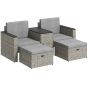 SUNVISTA 5-Piece Rattan Garden Set, Nesting Sofa & Footstools, Storage Coffee Table with Cushions, Outdoor Wicker Set, Grey