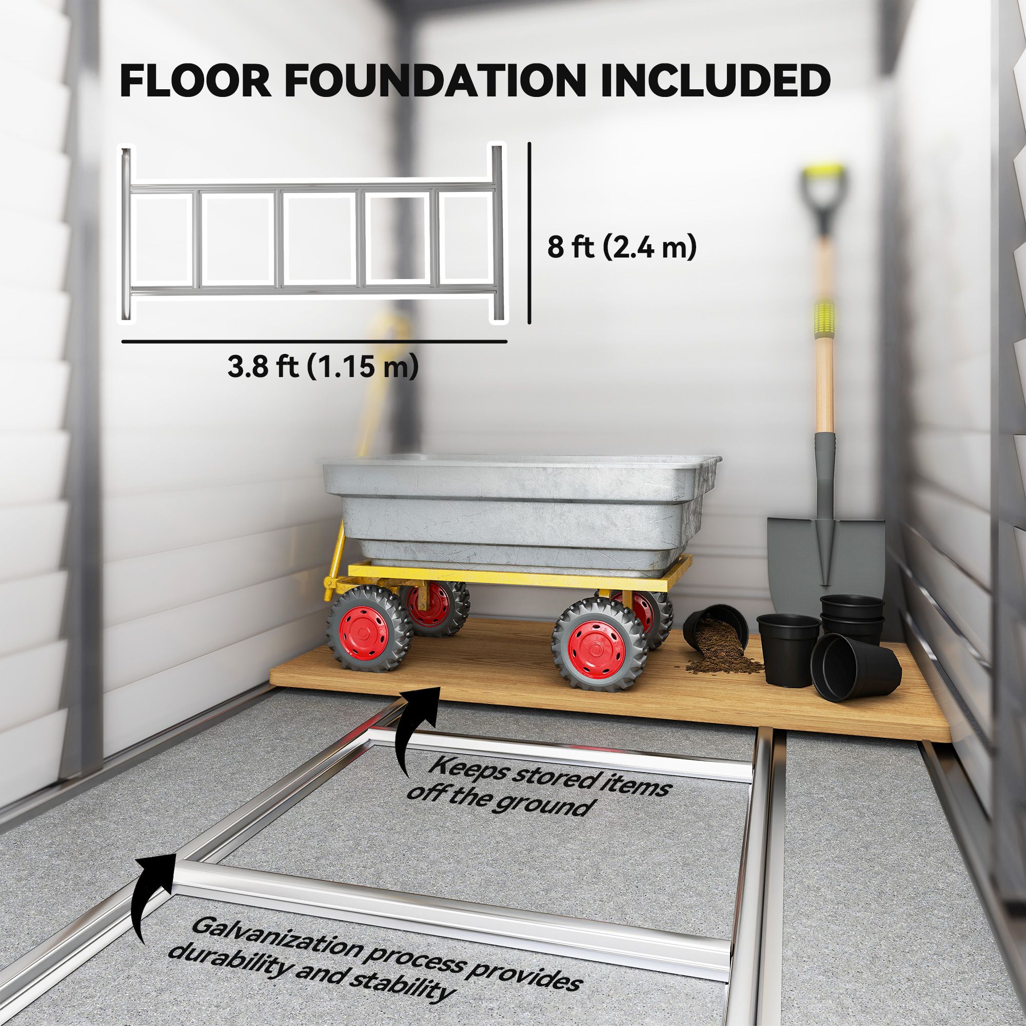 SUNVISTA 5x9ft Galvanised Metal Garden Shed Foundation Kit Lockable Doors - Grey