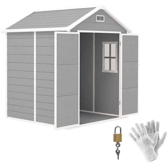 SUNVISTA 6 x 5ft Garden Shed, Plastic Shed with Floor, Window, Lockable Doors and Vents, Wood Effect Resin Tool Shed for Outdoor Patio, Dark Grey