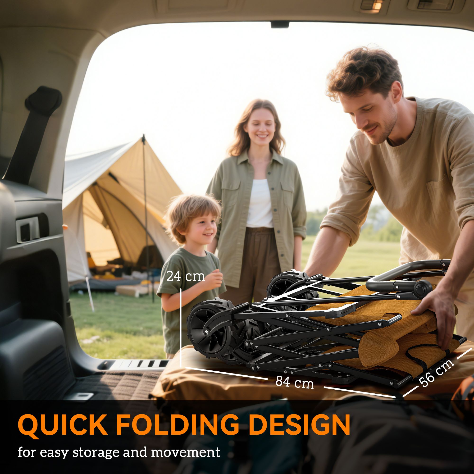 SUNVISTA Folding Trolley Cart Storage Wagon Beach Trailer 4 Wheels with Handle Overhead Canopy Cart Push Pull For Shopping Camping, Orange