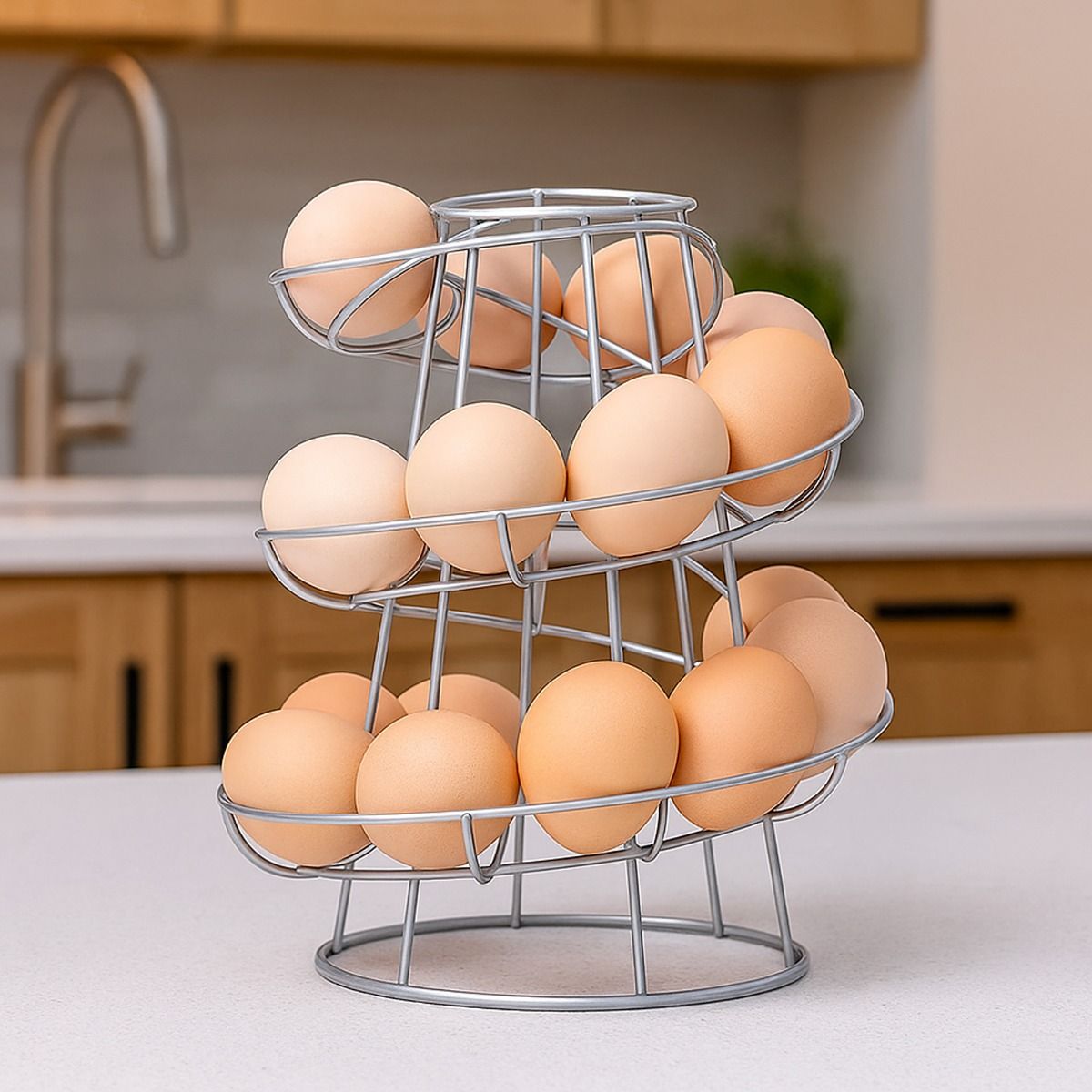 SWANTON Egg Holder Spiral Skelter Kitchen Stand Holds 12-18 Eggs - Silver