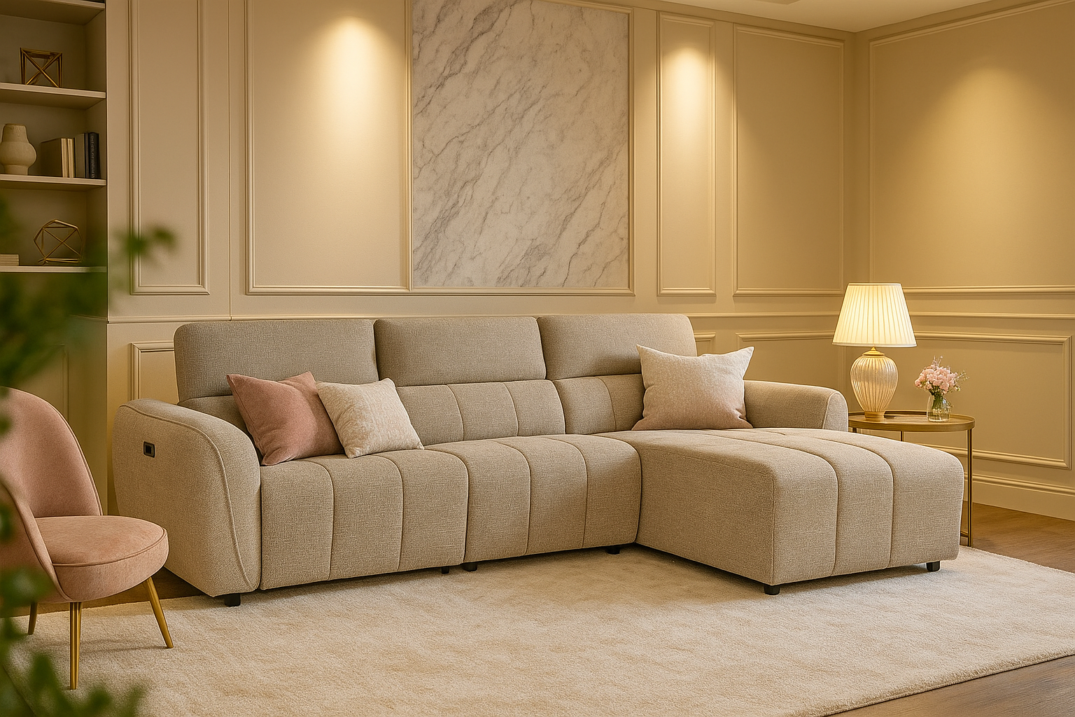 TARWIN Fabric 3 Seater Electric L Shaped Recliner Sofa - Mocha - Right Hand Facing