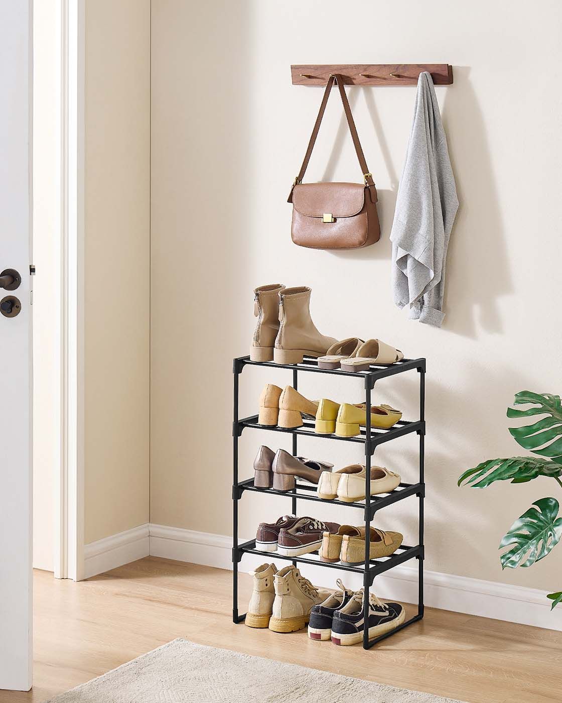 TARZA Shoe Rack - 4 Tier 10 Pairs Metal Medium Sized Rack - Black