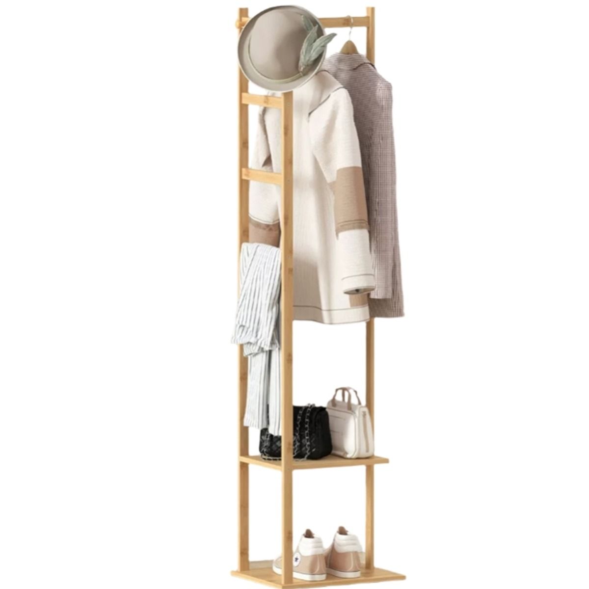 TRIVANTE Coat Stand Bamboo Garment Stand with Shelf and Hanging Rail - Natural