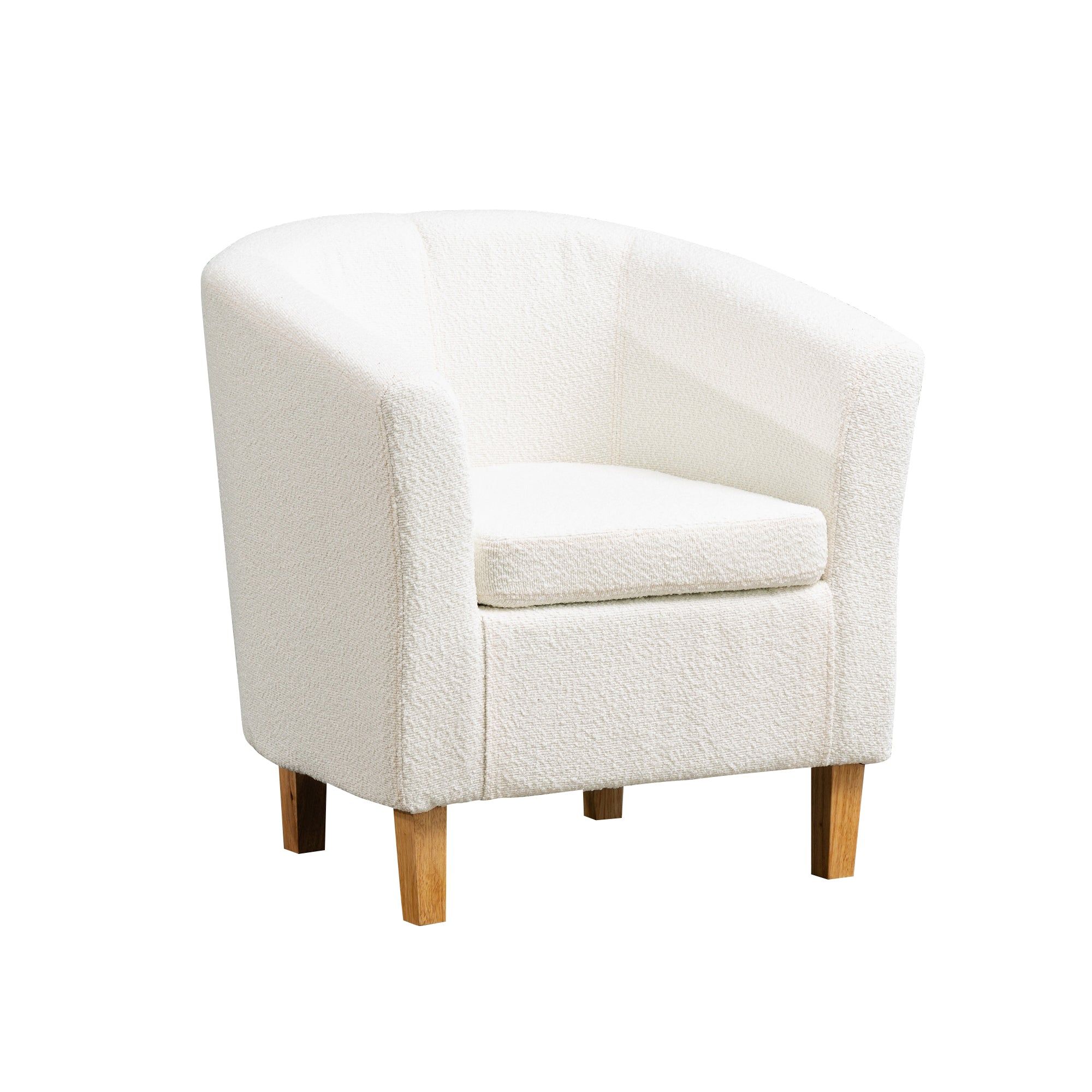 Tub Chair - VIVELLA Boucle Fabric Chair with Light Wood Legs - Cream