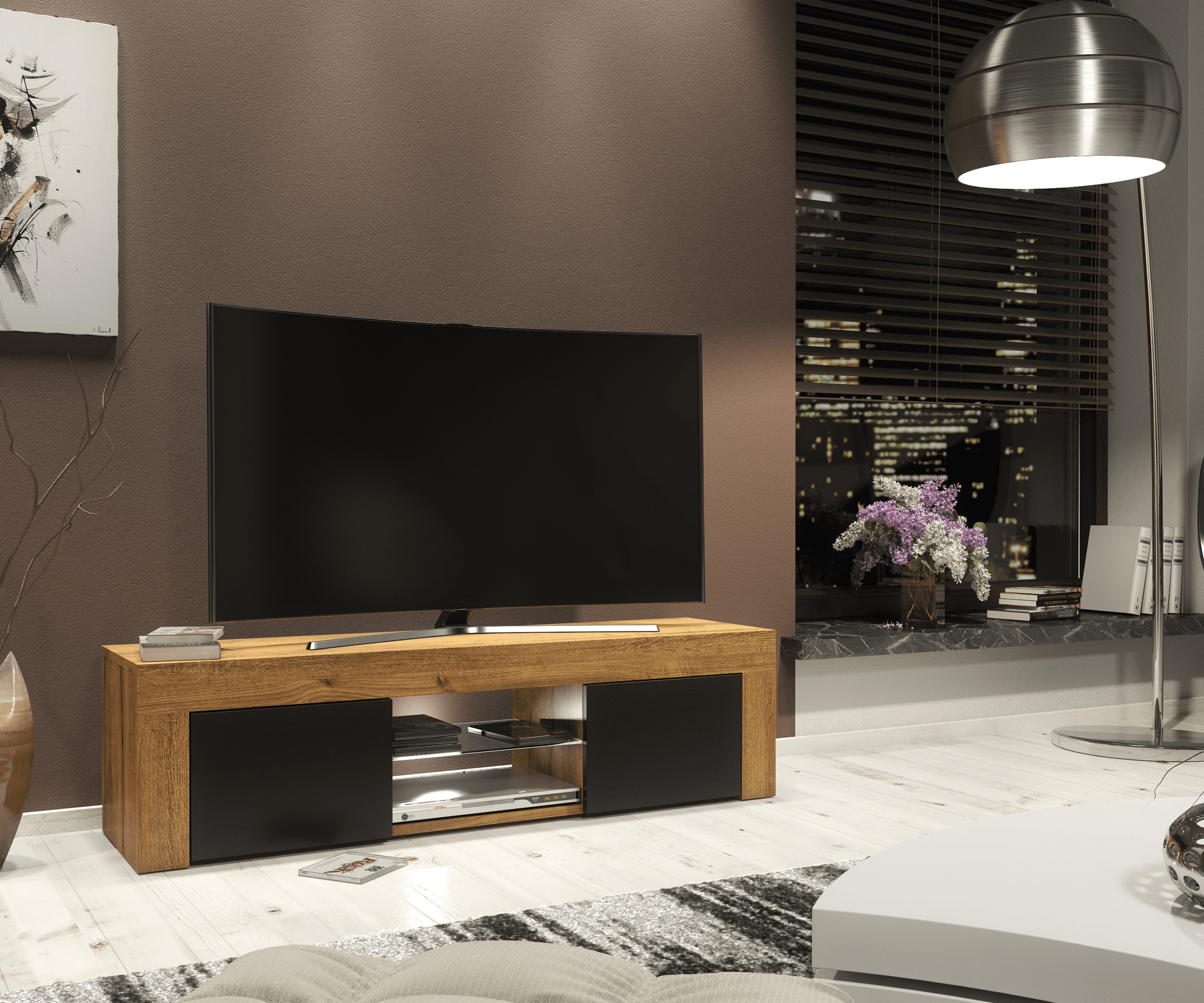 TUSSI Modern TV Unit LED Cabinet Stylish Matt Body And Matt Doors 130cm - Oak with Black