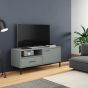 TV Cabinet with Metal Legs Grey Solid Wood Pine OSLO