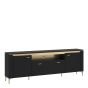TV Stand - GENOA 2 Door 1 Drawer Media Unit Black Matt and Gold 200.3cm