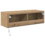 TV Wall Cabinet with LED Lights Artisan Oak 100x35x31 cm