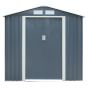 Constructed from electro-galvanized and painted steel with a 0.25mm thickness, the shed is both fire and rot resistant, ensuring long-lasting durability. The dark grey finish with off-white trim provides a modern and attractive appearance. Designed for low maintenance, the 6×4 Tyson Metal Pent style roof Shed is a practical choice for any homeowner. The door is fitted to the 6′ side only, optimizing the layout for efficient use of space. Available in both dark grey and light grey with off-white trim, this shed combines functionality with contemporary style.