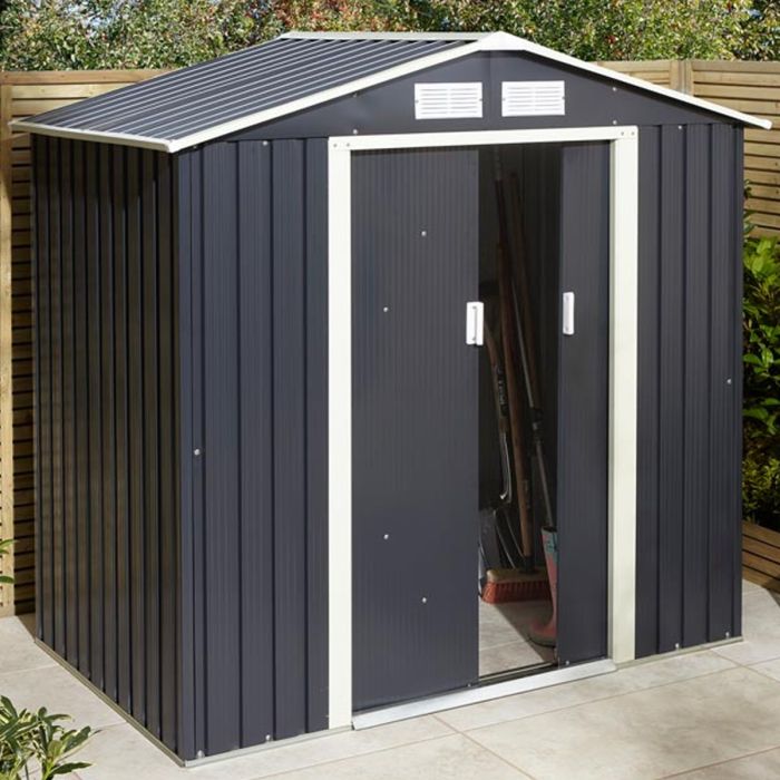 Tyson Double Sliding Door 6x4 Metal Pent Style Roof Shed - Dark Grey