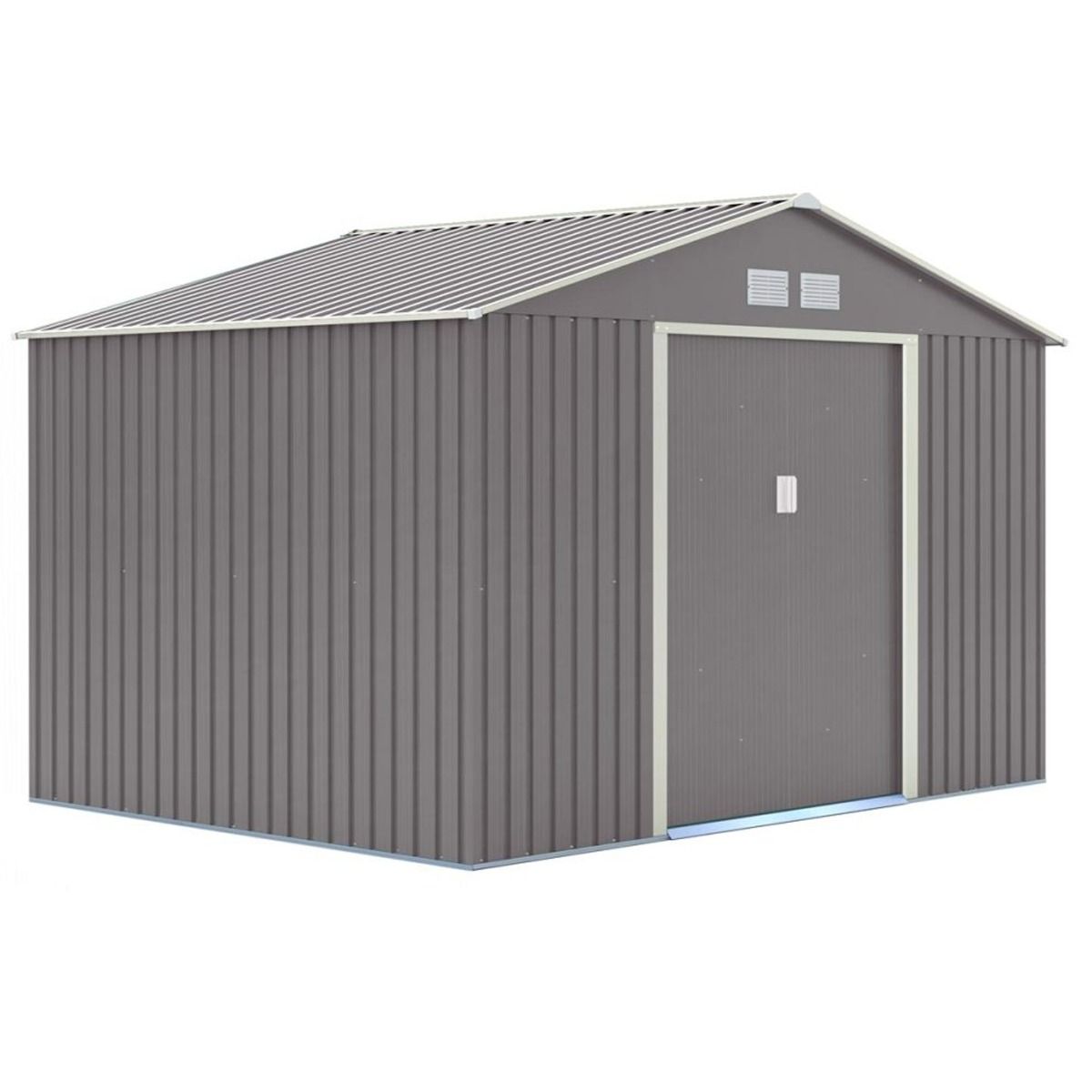 Tyson Sliding Door Metal 10x8 Apex Shed - Light Grey