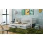 A beautifully crafted pinewood bed with a trundle and two storage drawers for extra storage. The primary bed is equipped with tall, universal safety guards and serves as a cot for infants and pre-schoolers. It’s a great choice for small houses with bedrooms having limited space. A safe and chemical-free water-based paint is used to protect your child from any health-related harm.