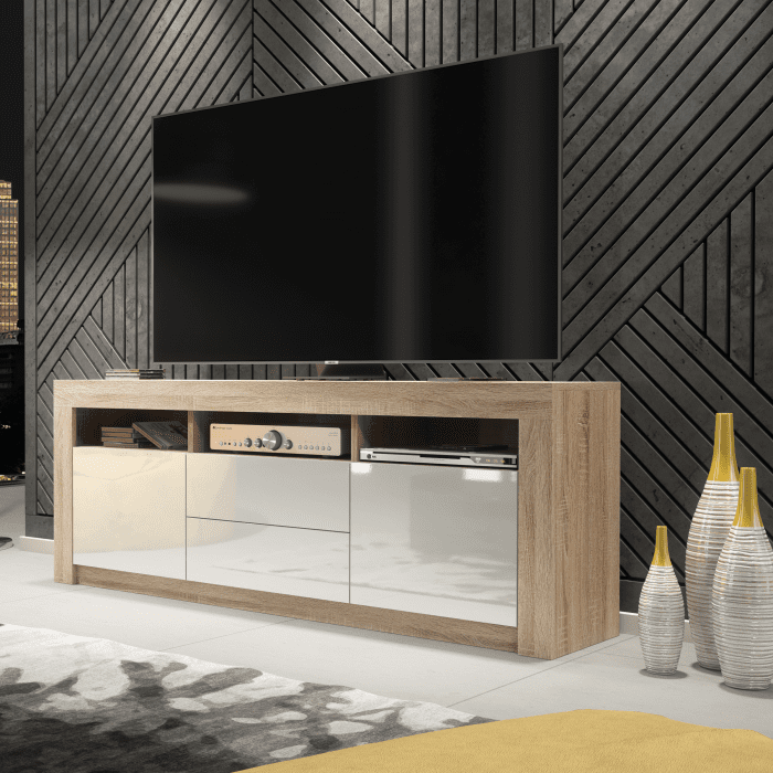URFI Modern TV Unit Matt Body with High Gloss Fronts 160cm - Oak with White