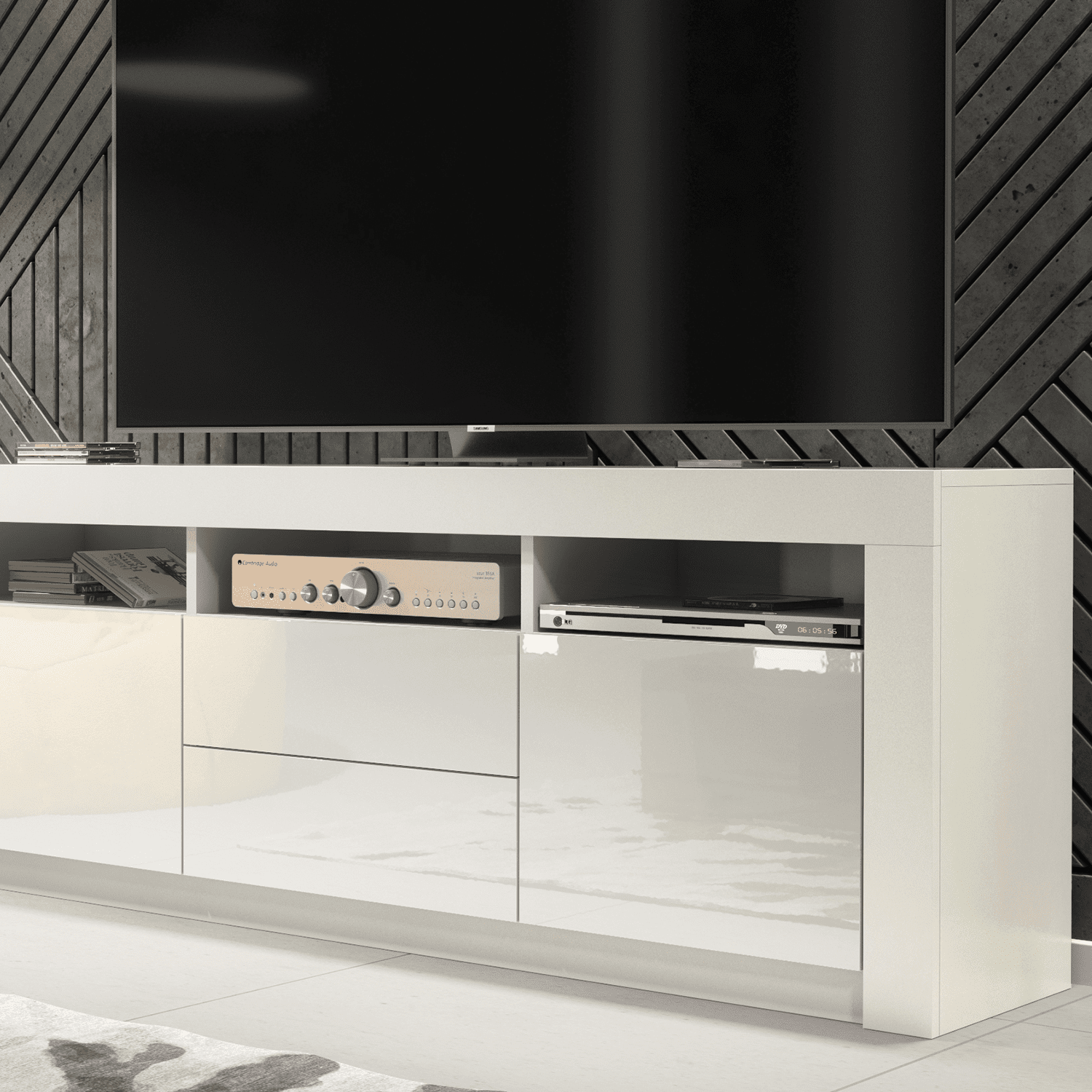 URFI Modern TV Unit Matt Body with High Gloss Fronts 160cm - White