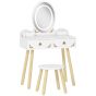 VALTHORNYX Kids Dressing Table and Chair Set with 3 Colour LED Lights Mirror, Drawer and Storage Boxes for 3+ Years - White