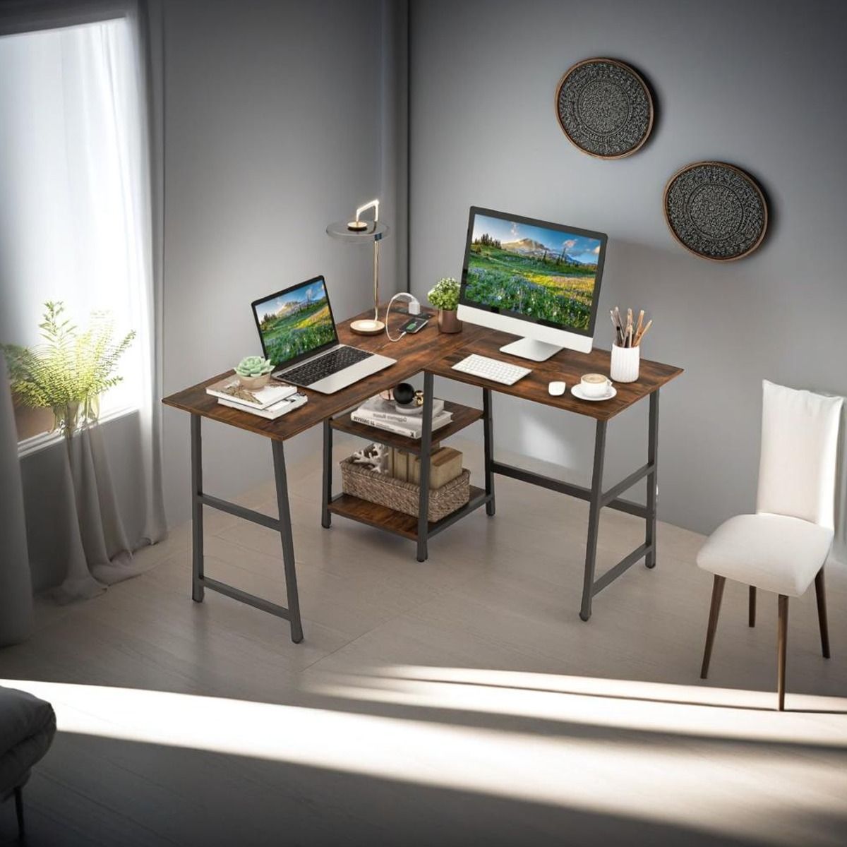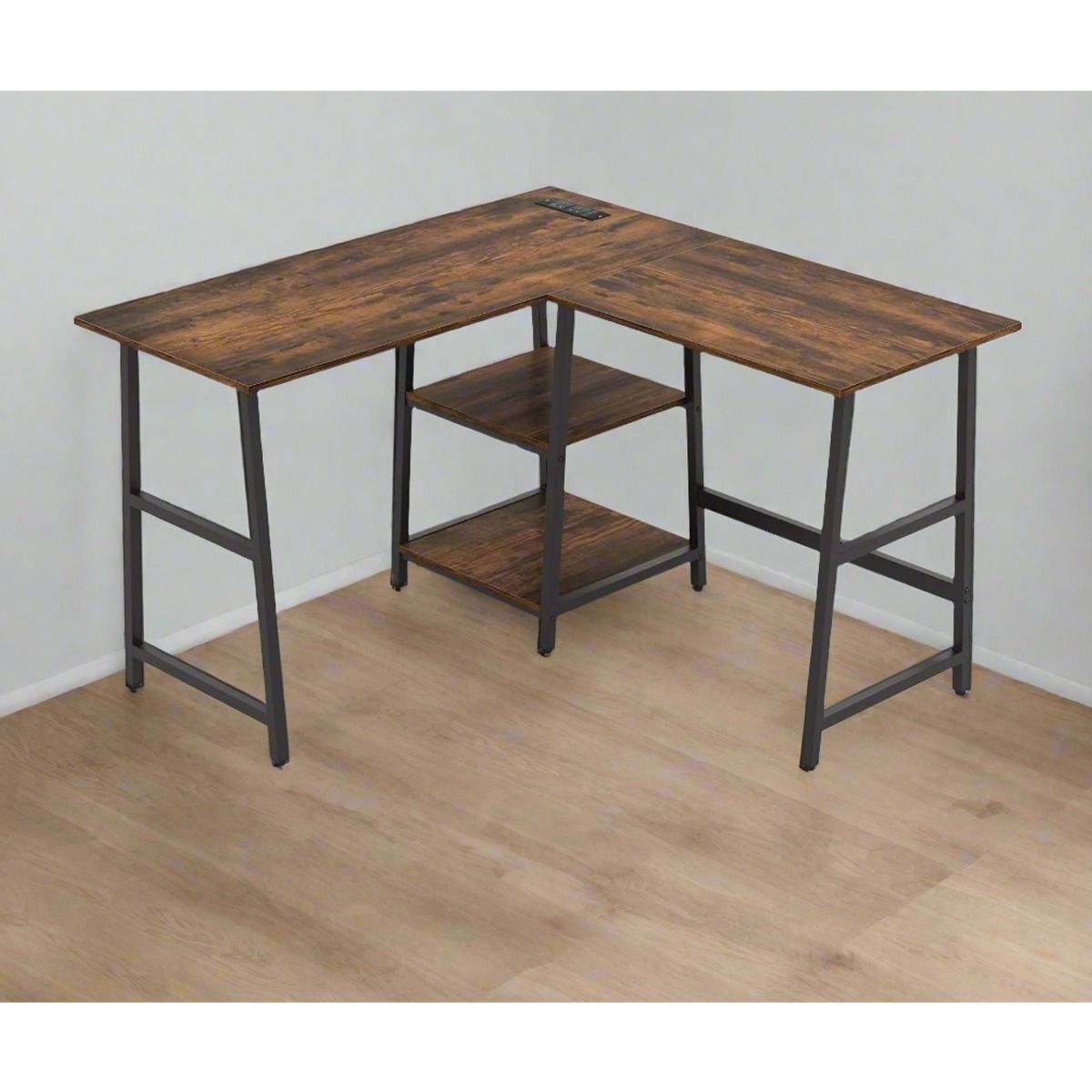 VANTORA Computer Desk L-Shaped Office Desk with USB and Type-C Charging Ports - Rustic Brown