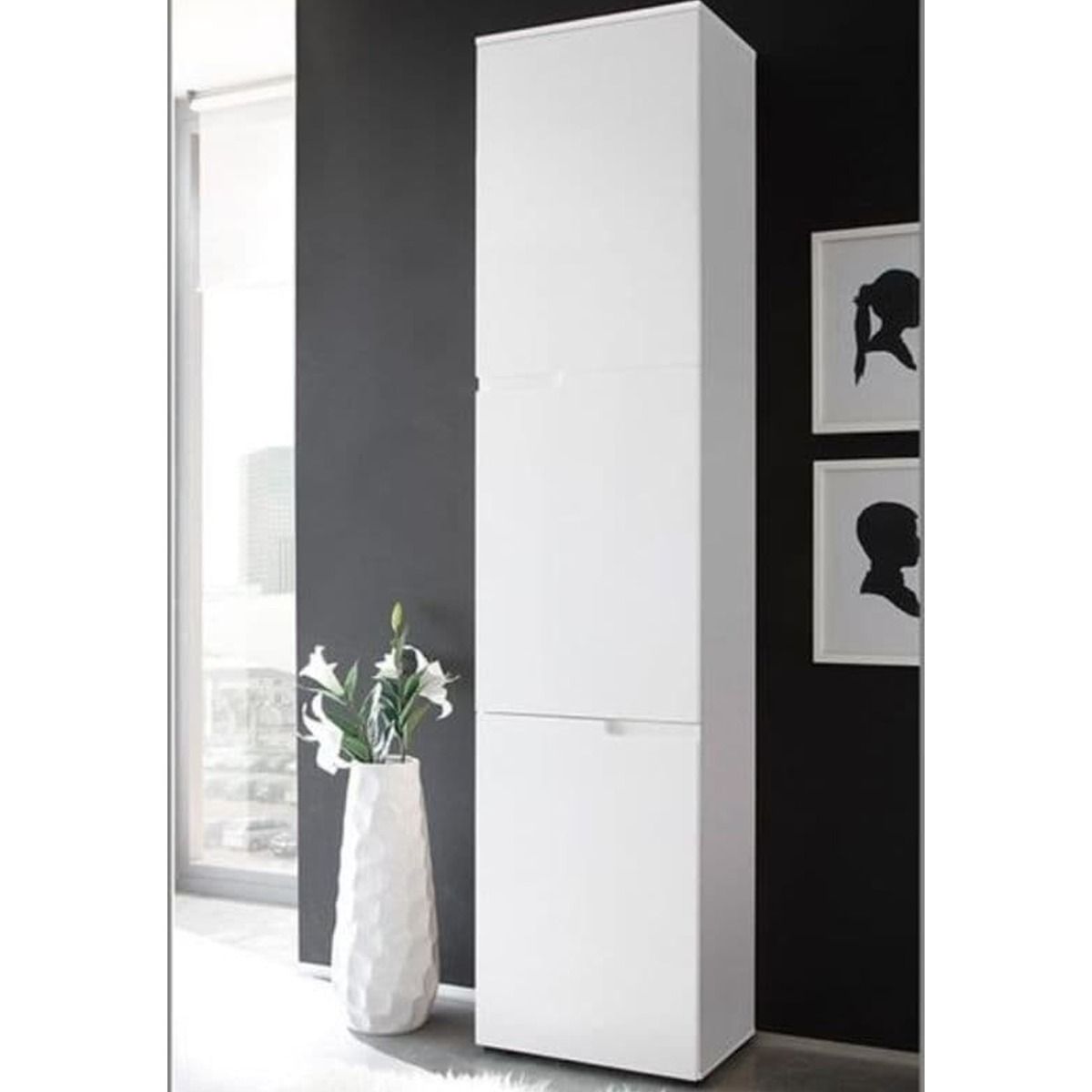 Viktoria Modern Tall Narrow Bookcase with 3 Doors - Matt White with White Gloss Door